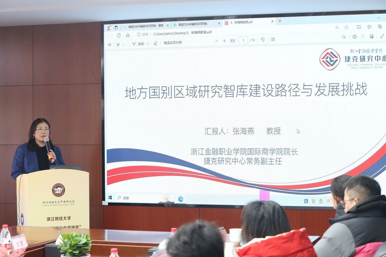 捷克研究中心执行副主任张海燕教授和浙江财经大学中亚研究院院长余慕鸿教授先后围绕区域国别学学科建设与人才培养、智库建设等作了发言。