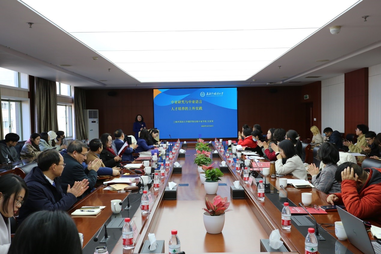吴爱荣教授作了题为《中亚研究与中亚语言人才培养的上外实践》的报告。阐述了上海外国语大学中亚语言专业的现状、建设情况和中亚语言人才培养的国际化途径以及面临的困难和挑战。