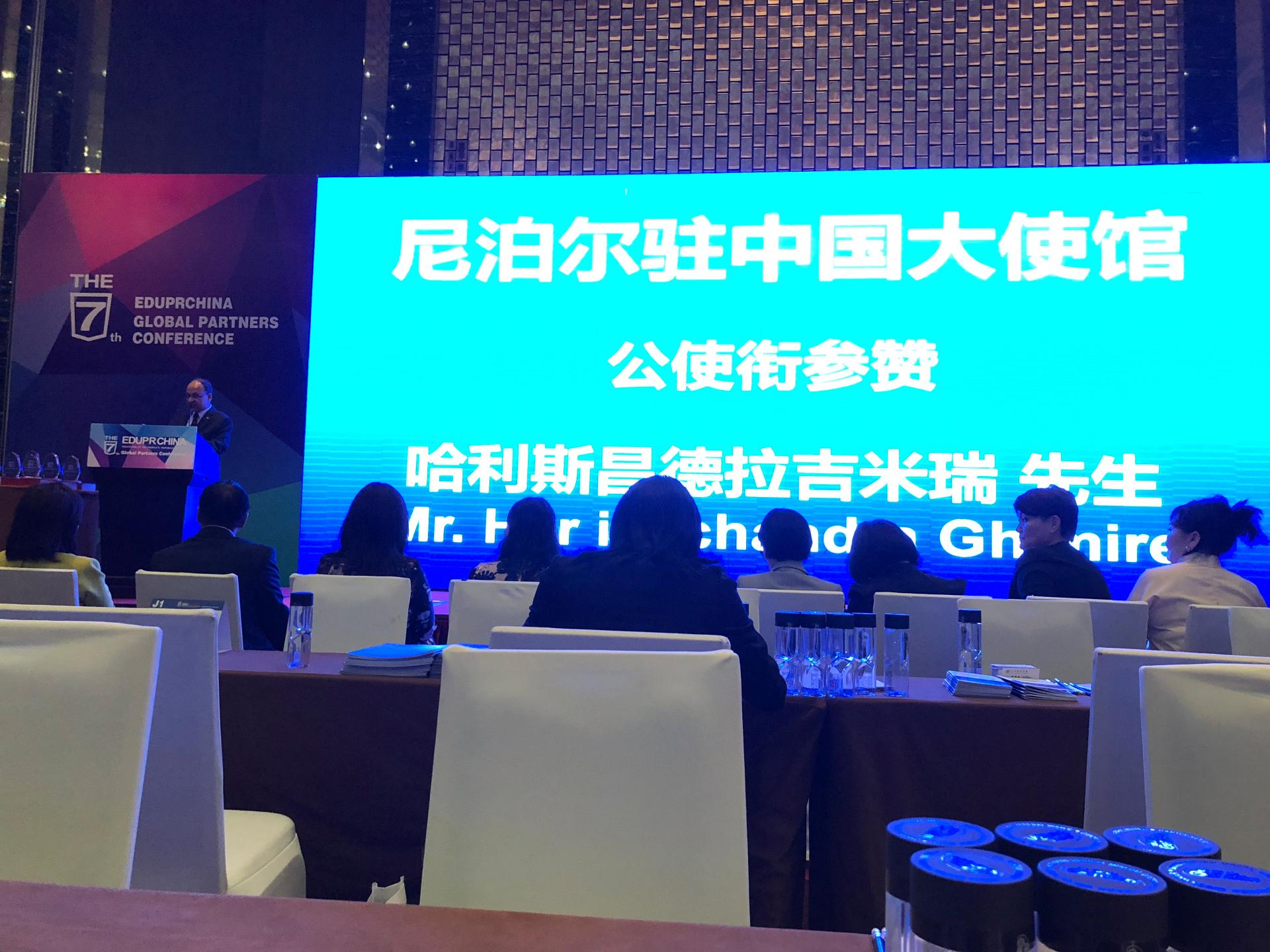 余慕鸿院长、国际交流合作处管春林副处长、王磊老师赴南京参加了“第七届EDUPRCHINA全球合作伙伴会议”。此次会议由南京双日教育科技有限公司(iStudy)主办,与会代表包括来自96所中国高等院校的200多名老师,“一带一路”沿线国家40余所高等院校,96家国际代理商机构和5家国际大学的校方代表。阿里巴巴天猫平台营运事业部总裁刘博、BAU国际大学校长Senay Yalcin、尼泊尔驻华大使馆参赞哈里斯·昌德·拉吉米瑞作为特邀嘉宾出席会议,盛况可谓空前。