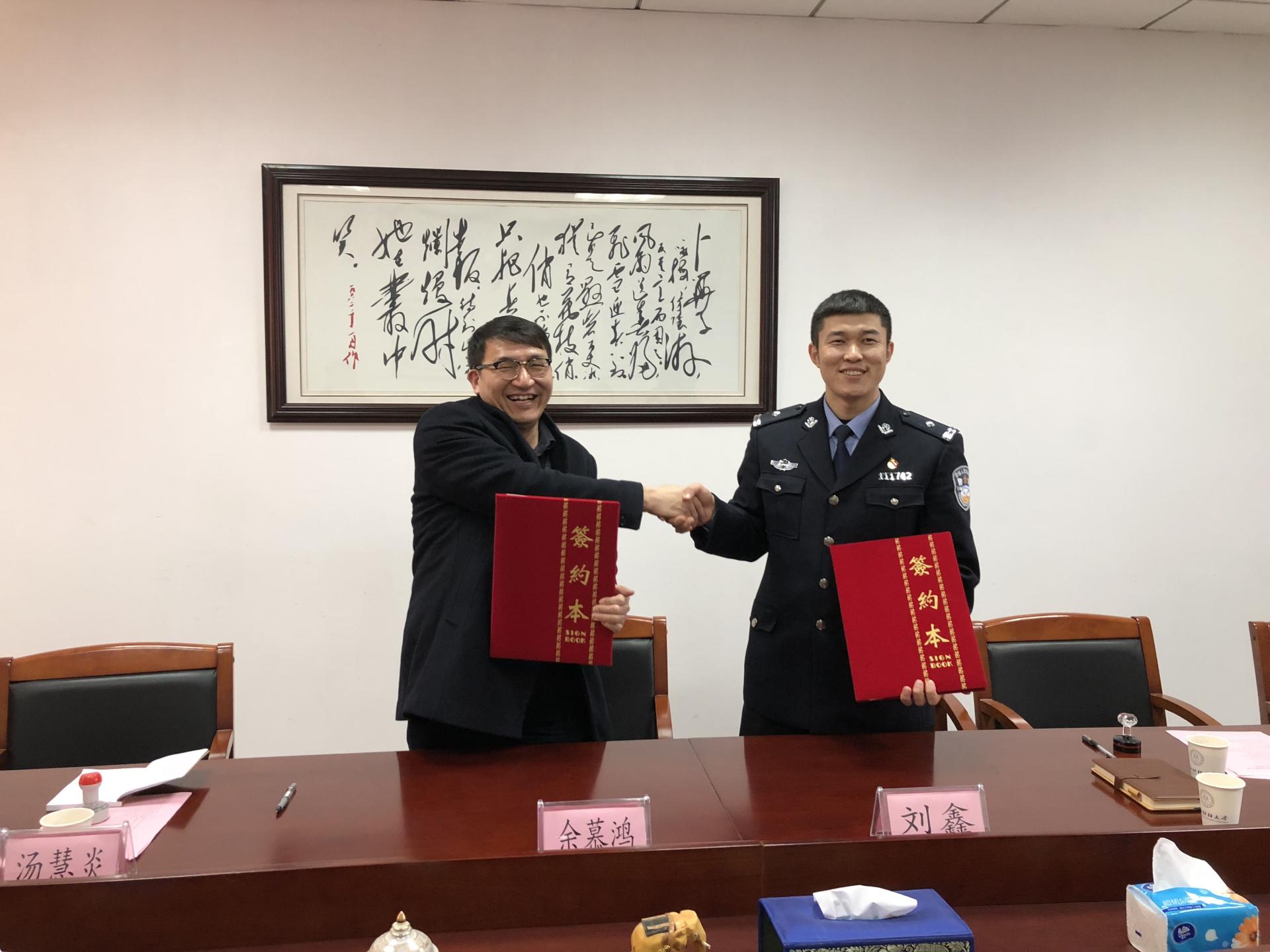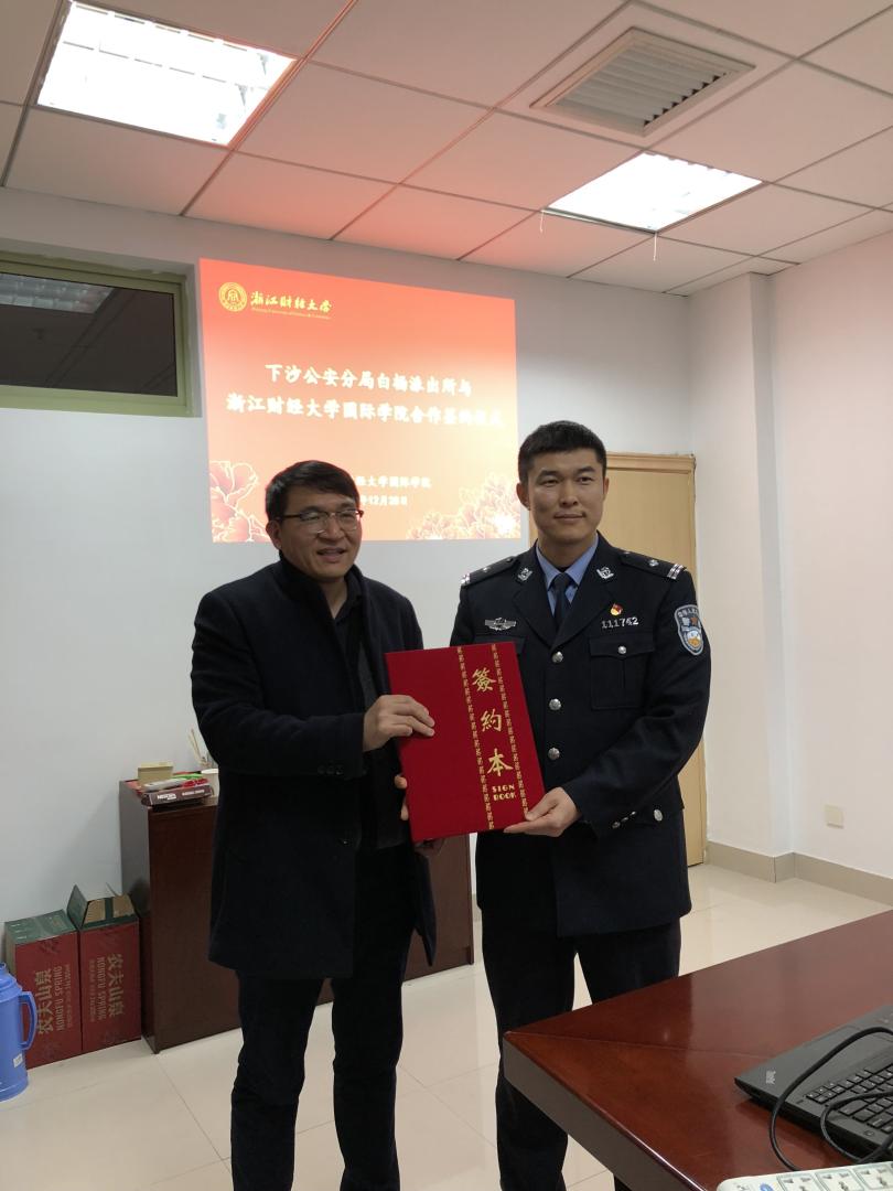 院长余慕鸿和白杨派出所所长刘鑫共同在浙江财经大学签署了合作协议。