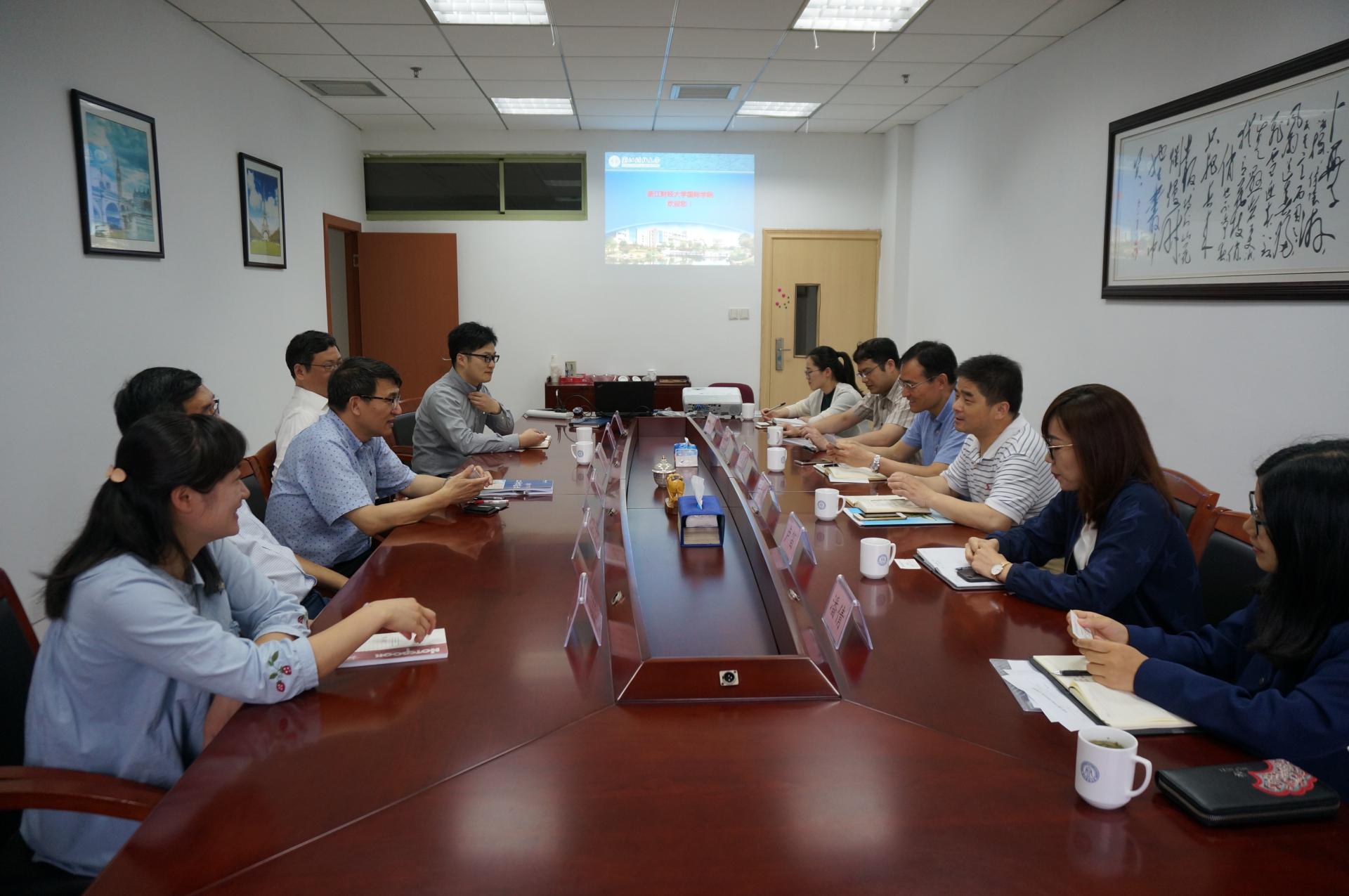近日,中国计量大学国际交流与合作处王鉴棋副处长,球探体育比分 赵自力副院长等一行6人来球探体育比分 调研考察。余慕鸿院长、李汉强副院长接待了考察团一行。