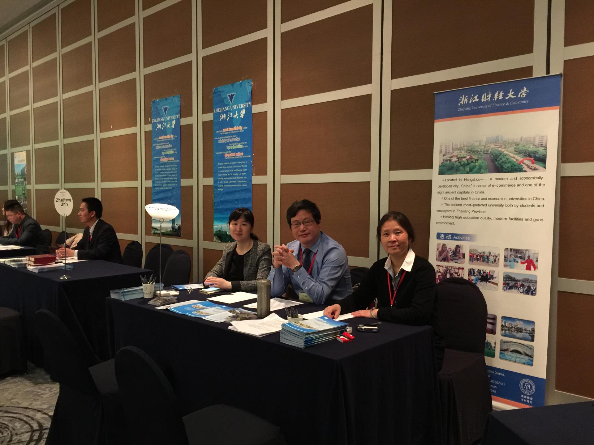 展会上,球探体育比分教师向来宾们介绍了球探体育比分国际教育的发展现状和优势,展示了体现财大风采的视频,并用图文并茂的形式详细介绍了浙江财大的师资、教学设施、课程设置、教学活动以及留学生文化活动等方面的内容,博得了与会嘉宾的一致好评。展会期间,球探体育比分代表共接待嘉宾、教师、学生及家长百余人,接触中介教育机构二十多家,发放财大招生宣传资料300多份,并与一些韩国家长、学生进行了深入的交流,为球探体育比分扩大韩国留学生招生规模打下了基础。