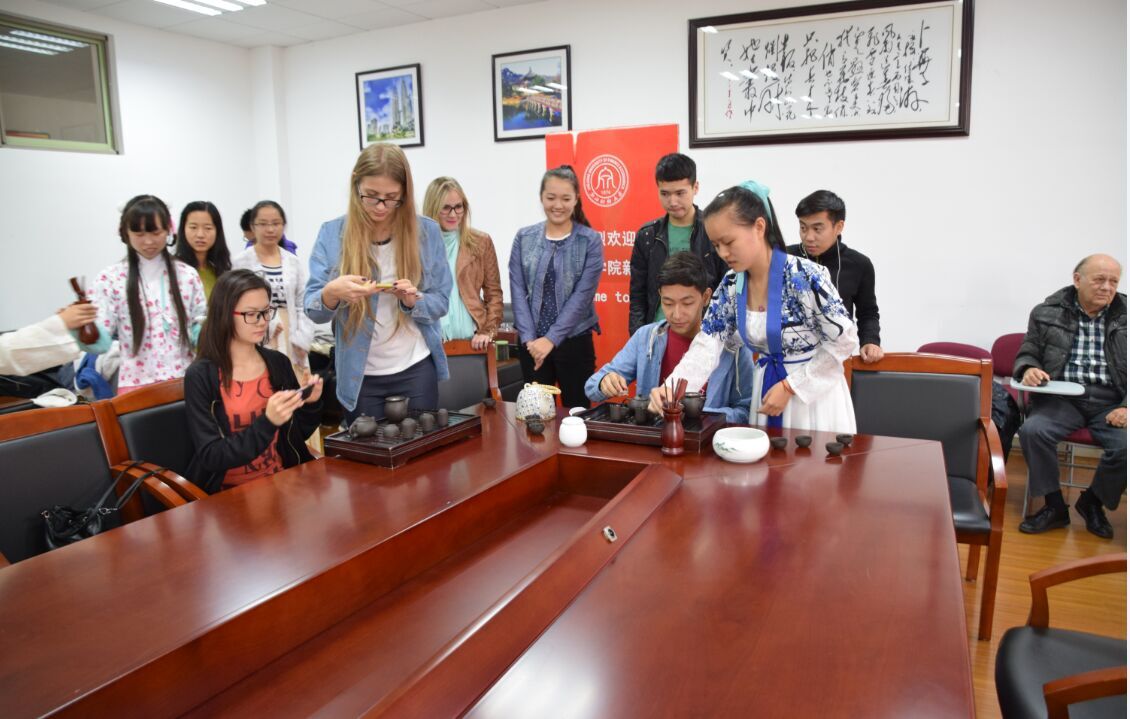 和财大茶艺协会联合为外国留学生举办了一场中国茶艺表演活动,主题是传播中国茶文化和茶道精神。