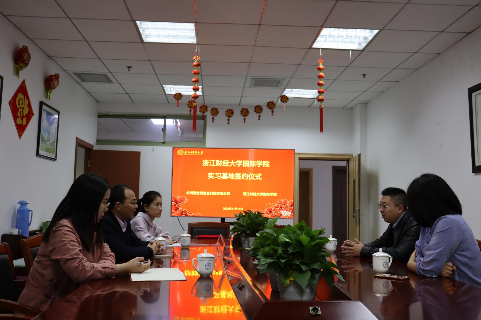 与杭州壹堂课信息科技有限公司在E103A会议室举行留学生人才培养创新创业实践基地签约仪式。杭州壹堂课信息科技有限公司总经理汤叶灿、经济球探体育比分