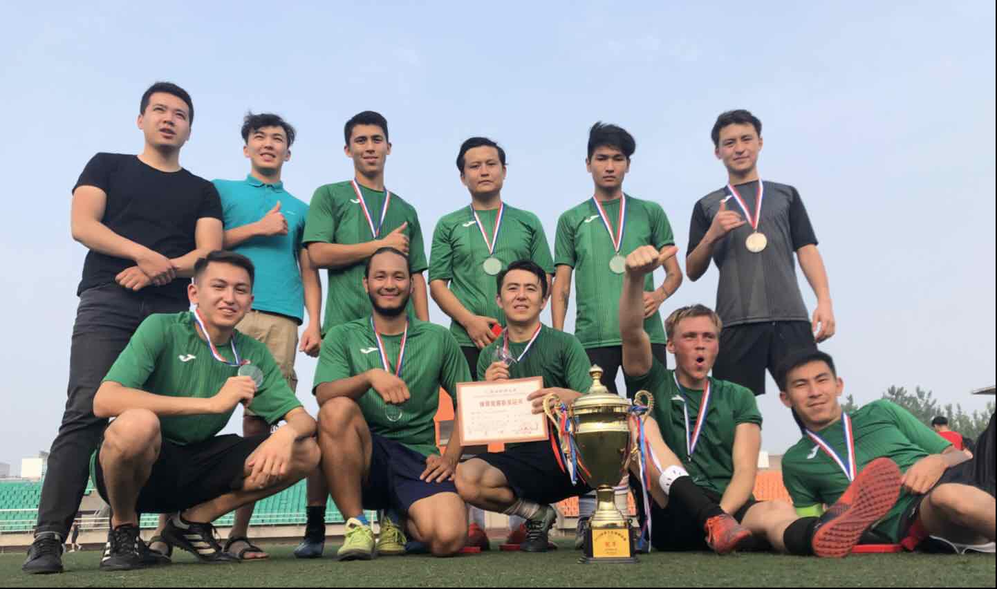 留学生足球队团结一致,众志成城。在小组赛、淘汰赛中所向披靡,以全胜的战绩进入决赛。决赛中,十一名来自哈萨克斯坦和乌兹别克斯坦的帅气小伙们,动作娴熟,配合默契,打出了水平也打出了气势,球队的精彩表现赢得了在场观众的喝彩。