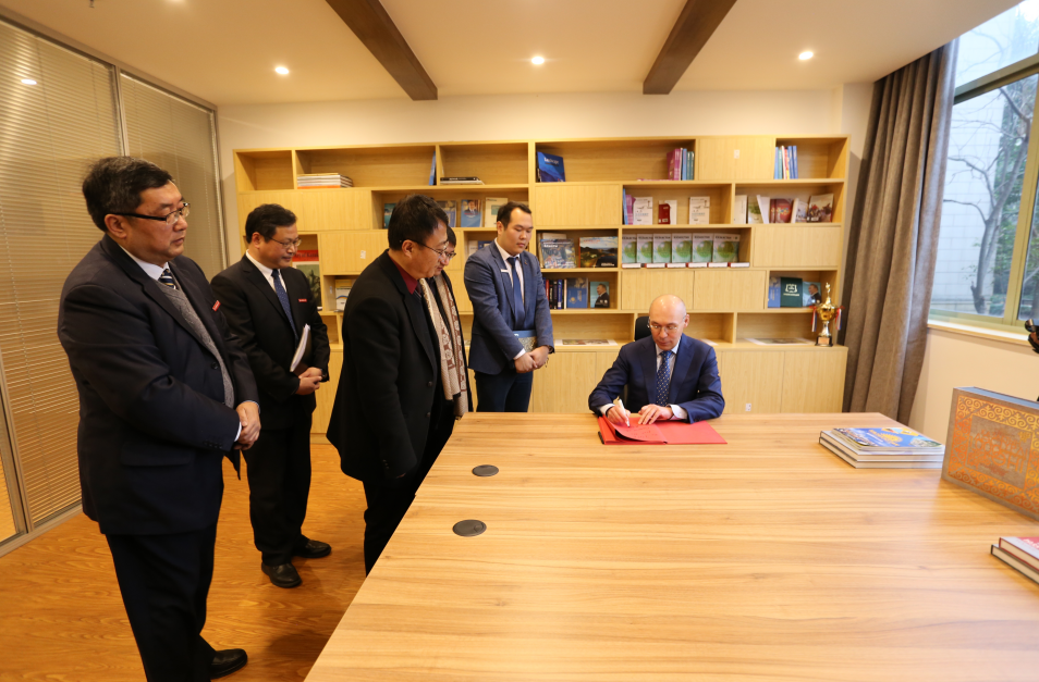 访问,并参观了哈萨克斯坦中心和浙江财经大学哈萨克斯坦经济社会研究中心。哈萨克斯坦共和国驻沪总领事克拉巴叶夫·佐齐汉, 哈萨克斯坦教育科学部国际计划中心别克主任等8位哈国贵宾陪同参观。