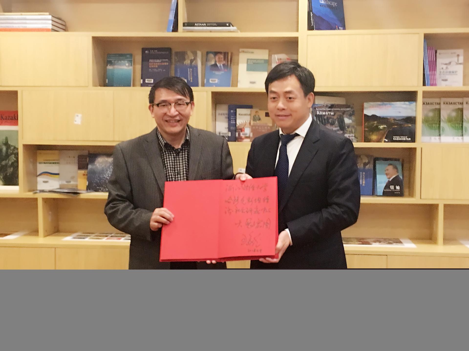 王义桅教授结合自己的研究成果和人生阅历,基于再造中国,再造世界的视角,对什么是“一带一路”,为什么建“一带一路”以及如何建“一带一路”三个专题,进行了深度阐释,引起了在场200多名师生的深刻思考。他指出,“一带一路”的提出,是所有国家不分强弱、贫富,都能平等相待、共同参与的合作,是公开、透明、开放,为世界和平与发展增添正能量的合作。“一带一路”冀望通过加强交通、能源及网络等基础设施的互联互通建设,促进经济要素有序自由流动、资源高效配置和市场深度融合,开展更大范围、更高水平、更深层次的区域合作,打造开放、包容、均衡、普惠的区域经济合作架构,以此来解决经济增长和平衡问题。“一带一路”顺应了全球治理体系的内在要求,彰显了同舟共济,权责共担的命运共同体意识,展示了全球治理的东方智慧,为全球治理提供了新的路径与方案。王义桅教授还建议学校以经管类专业为基础,依托浙江的经济优势,争取将“哈萨克斯坦经济社会研究中心”建设成为享誉全国的研究中心。