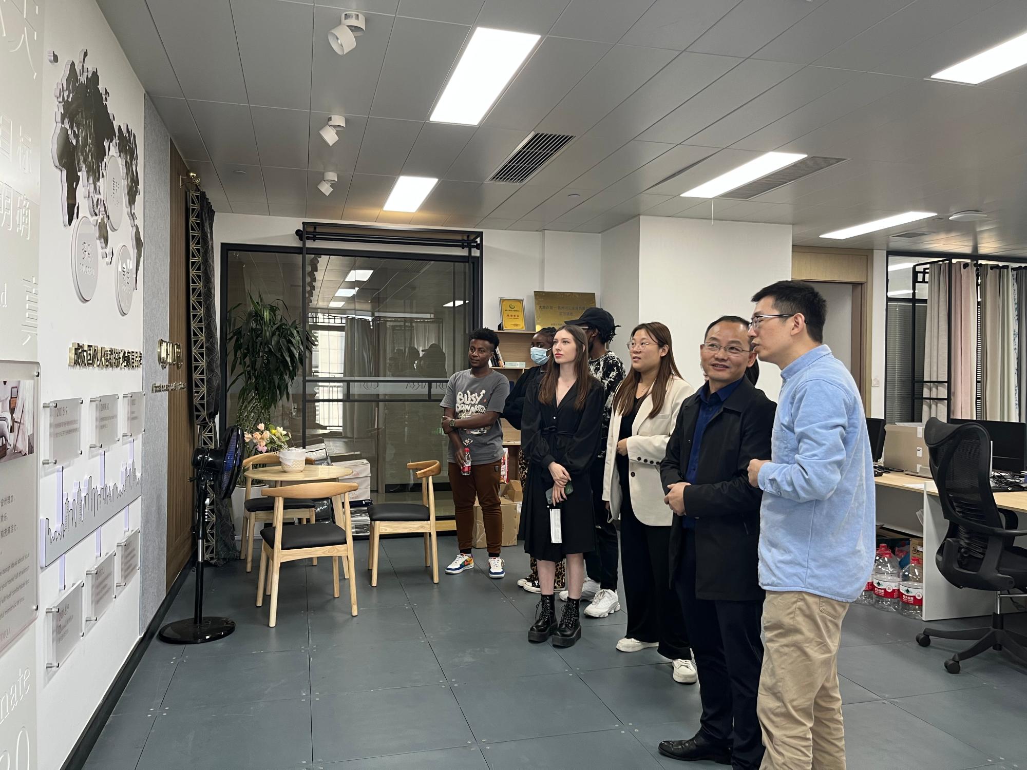 谢何铭带领师生参观交流,详细介绍了公司的跨境电商业务发展情况、公司文化与海外战略,提出希望充分利用双方资源优势,为公司海外战略提供语言文化支持,同时公司也愿意积极支持学校留学生开展实践教学活动。柴志贤介绍了学校留学生培养情况与专业特色,希望实践基地为双方今后合作提供更多的平台支持,为公司国际化经营、学校人才培养双向赋能。