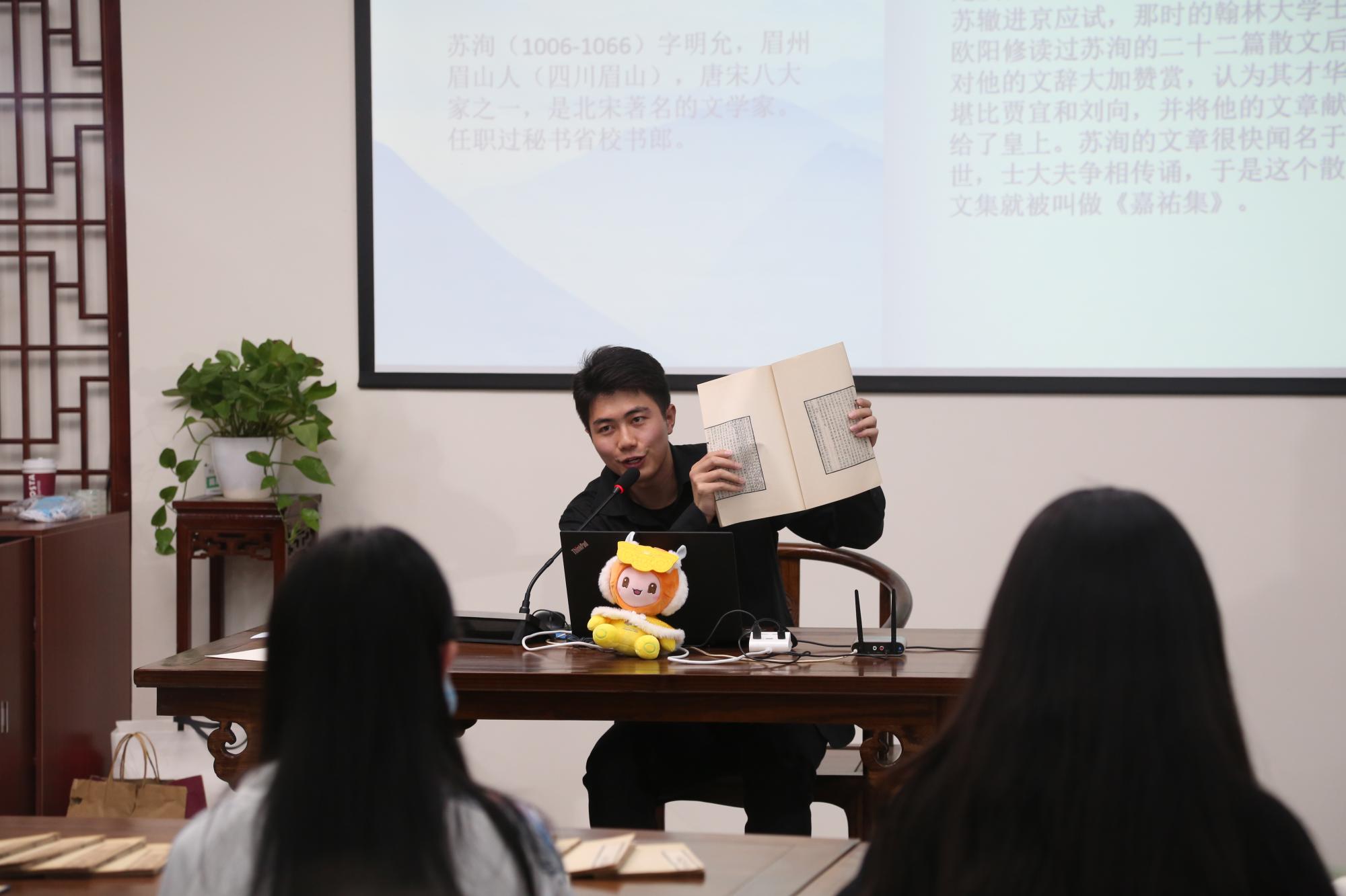 为了更好科普汉字文化,展现汉字之美,汉语国际教育研究生黎菁予也对古籍进行了细致的讲解,在场师生听得如醉如痴。