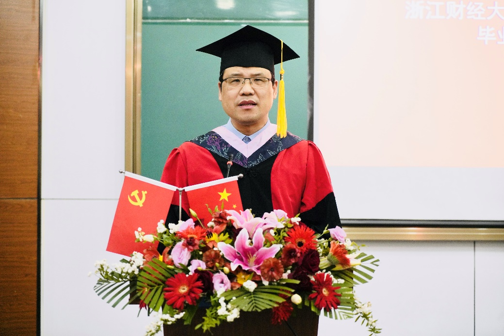 毕业生代表胡志强同学发表毕业感言,他感谢一路伴随前行的师长亲友,并请他们放心,工商的青年一代将不负韶华,不负党和人民的殷切希望,不负师长和亲友的真挚嘱托,在通往远大理想的征途中,不畏“道阻且长”,向着“星辰大海”风雨兼程。