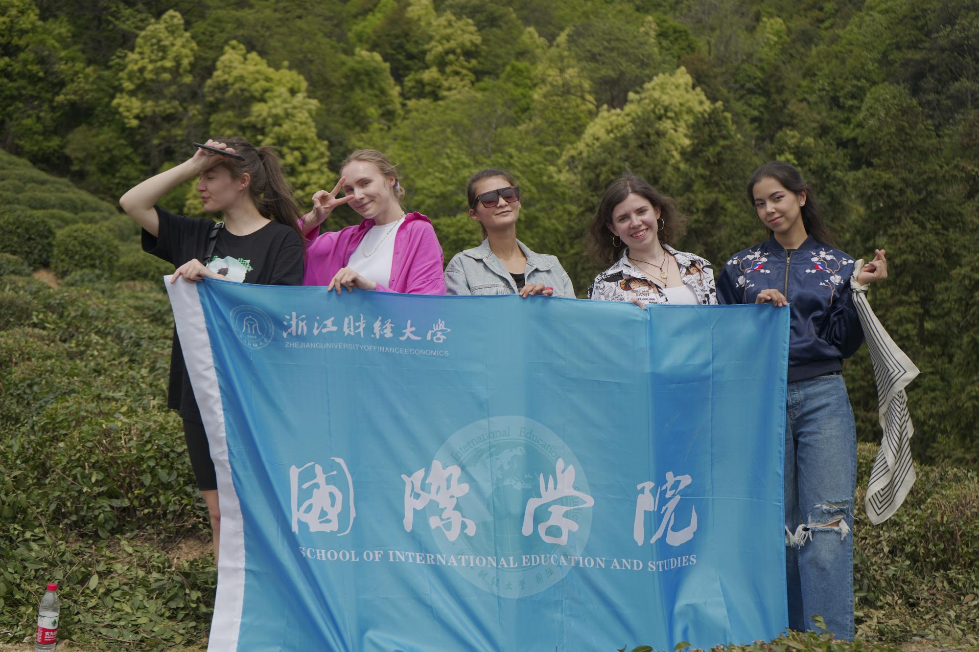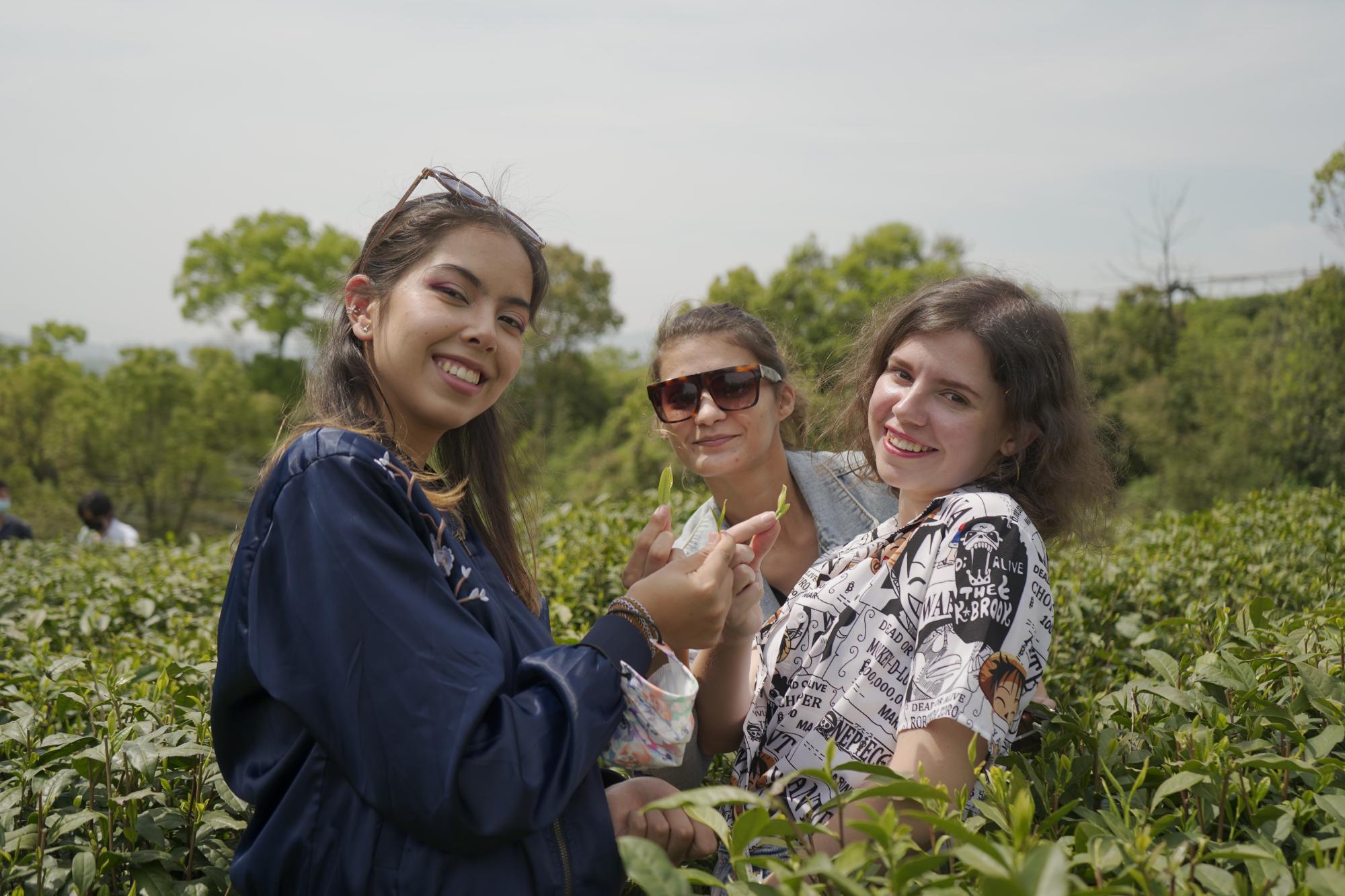 4月10日,浙江财经大学葭萌茶艺社携中外学生前往外桐坞村茶园学习采茶、制茶知识,带领大家走进中国茶的世界。以中国茶,会四方友。