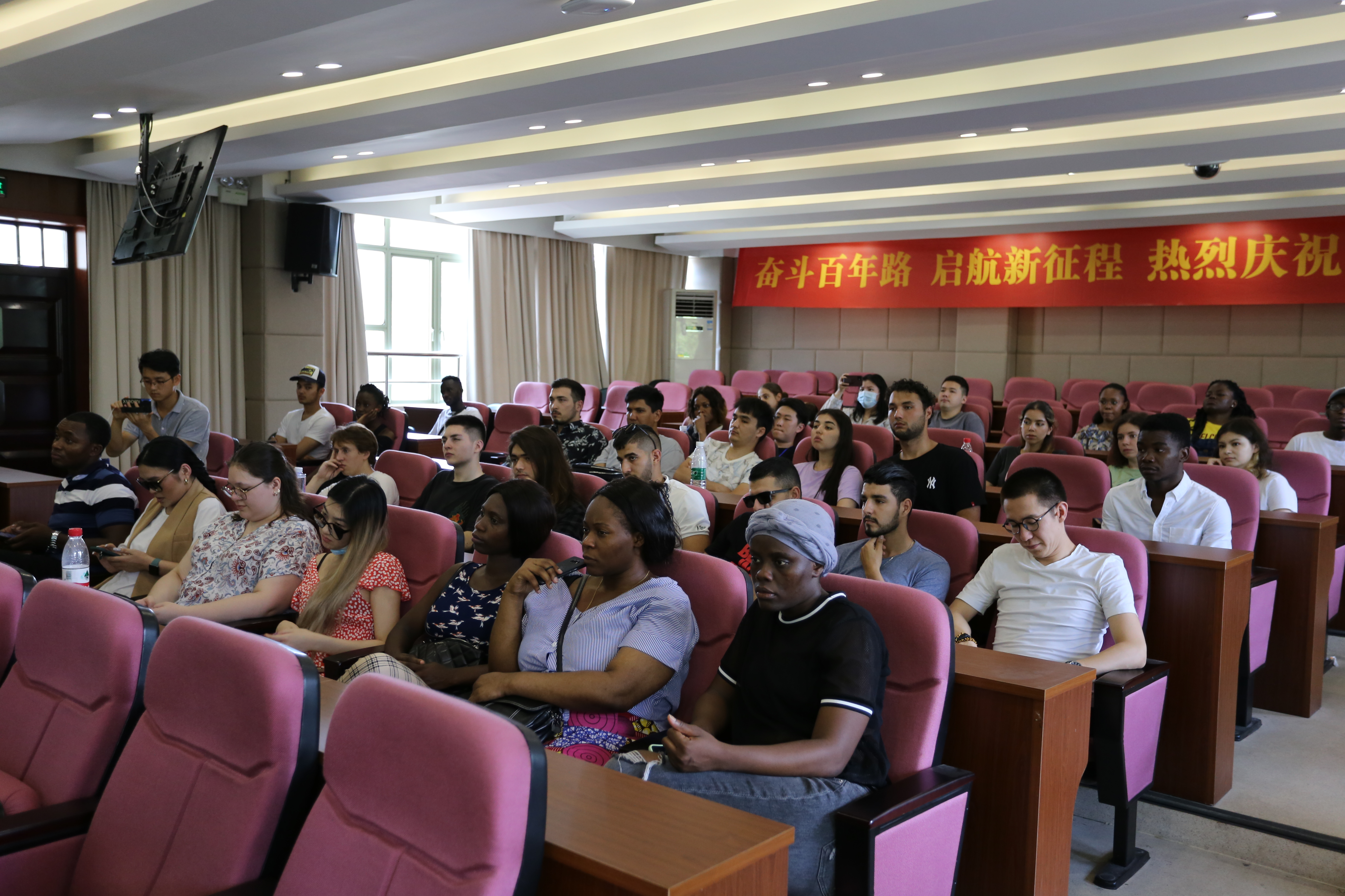要求,留学生在华期间要严格遵守中国法律法规和校规校纪,禁止吸食毒品、非法打工、非法传教等违法违纪行为。针对暑期疫情防控,管理老师建议大家尽量减少离杭活动,关注自身健康状况,如需离杭,需要通过假期离杭审批程序,并再次强调暑假在线签到打卡制度,确保大家可以有效避免前往中高风险地区旅游。学生们聚精会神地听讲,并不时记录、拍摄自己所关注的内容。柴志贤副院长在总结发言中强调安全是重中之重,所有学生应提高安全意识,切实保护个人人身和财产安全。