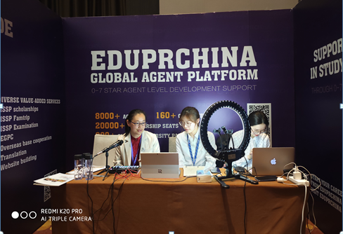 代表,进行了一对一线上互动。双方介绍了各自学校情况,并就暑期夏令营、学生交换培养等方面进行了广泛交流,双方表达了进一步合作的意向。积极推动留学生招生宣传,通过一对一洽谈等方式,与海内外教育服务机构就相关合作进行了深入的交流。