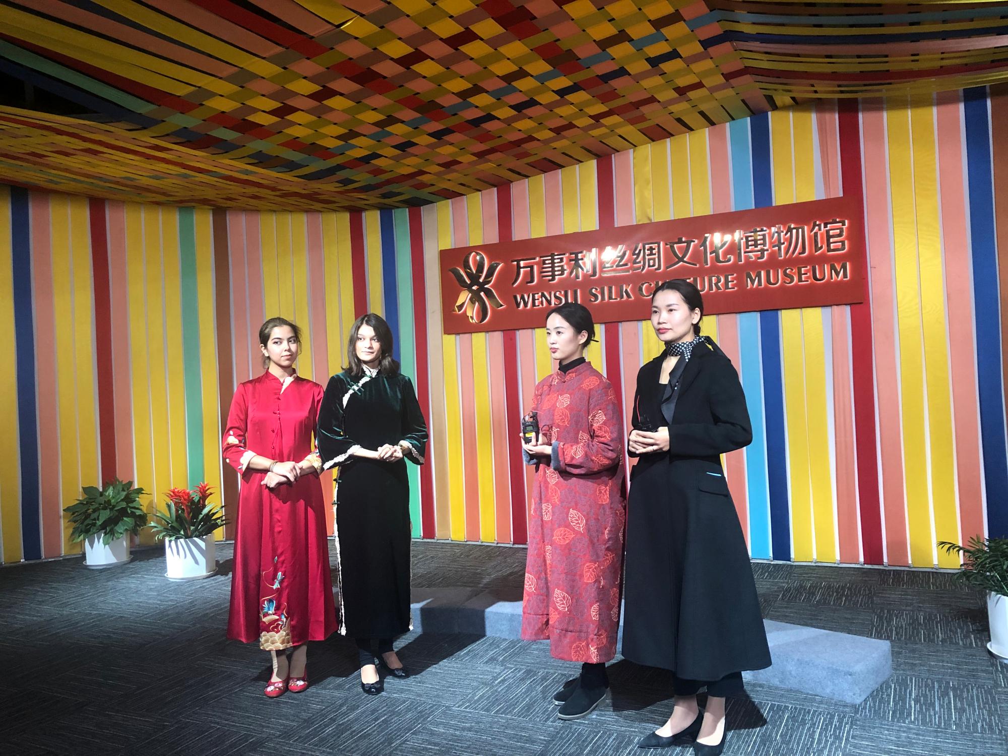 在万事利丝绸博物馆,留学生们不仅了解了中国传统丝绸文化,还学到了美丽丝巾的搭配方法。