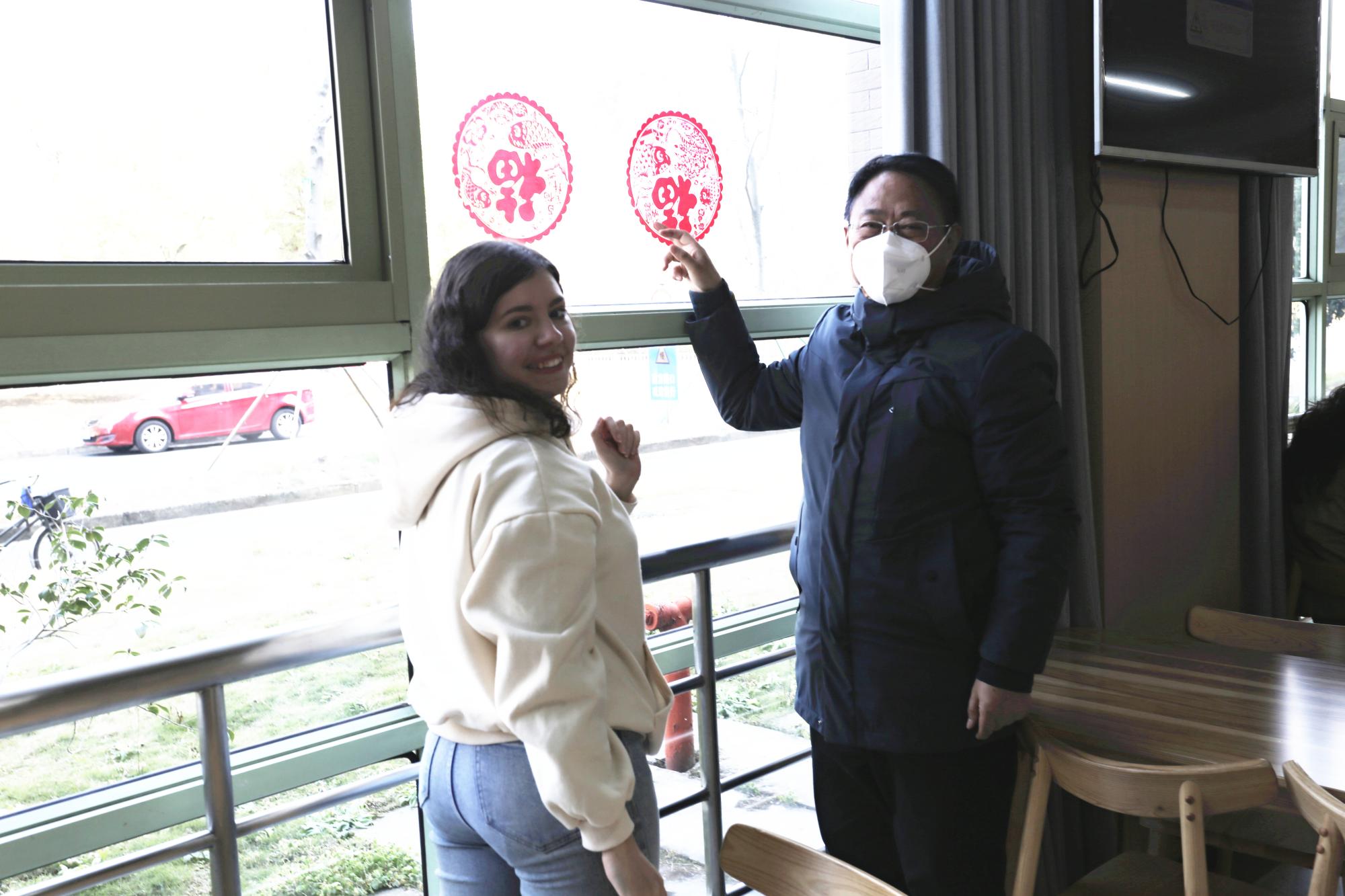 活动3:学校领导看望在校国际学生,“贴窗花、包饺子、共进团圆饭”