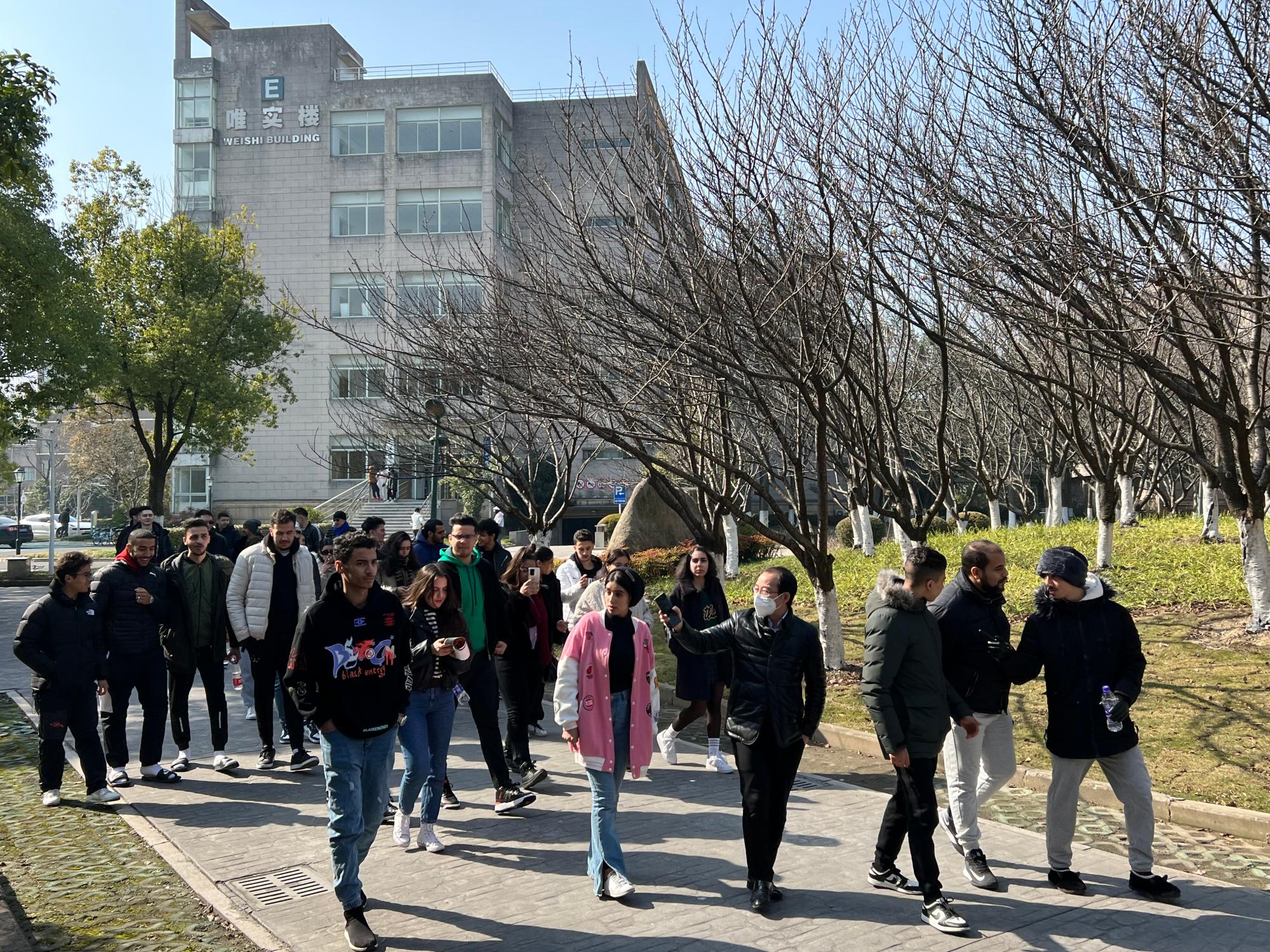 院长柴志贤的带领下漫步校园,师生一同游览欣赏着学校的人文风光。登高校友林时,同学们聆听并感悟着“十年树木、百年树人”的道理。驻足学涯湖畔,不论是湖中嬉戏的大鹅,还是丰富多姿的校园风光都让同学们回味无穷。