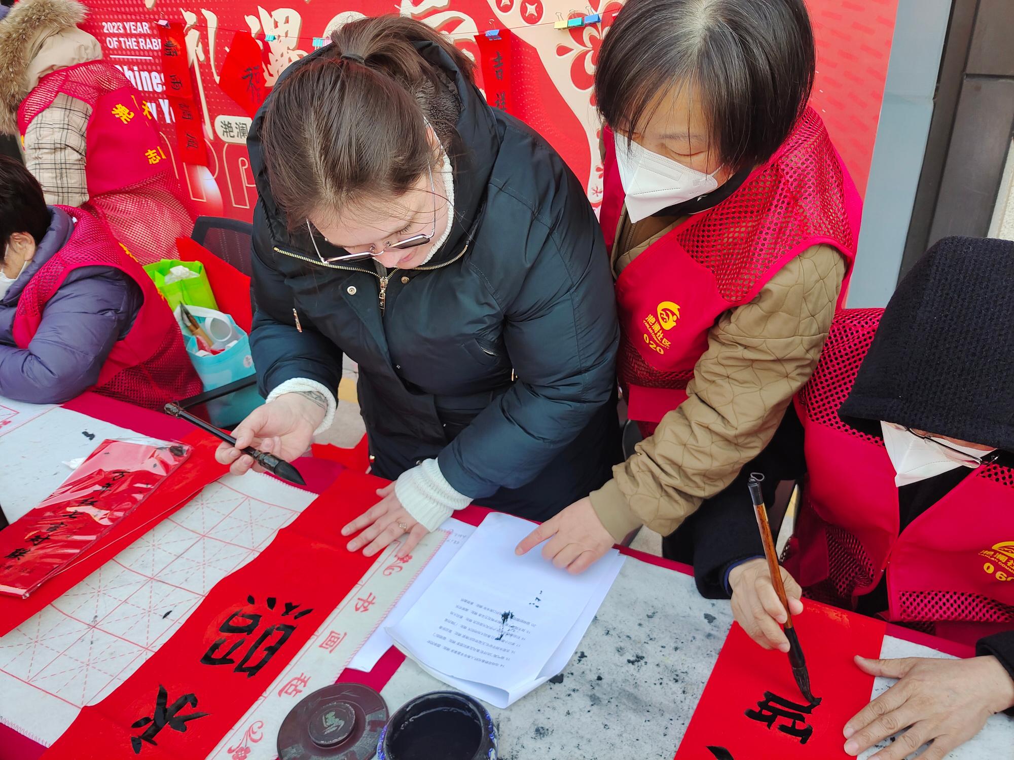 在活动开始之前,留学生们受钱塘发布邀请,在镜头面前留下了各自对新年的祝福和对2023杭州亚运会的期待。活动过程中,留学生们和社区的居民一起写“福”字、剪窗花、写对联、体验“自制棉花糖”。来自哈萨克斯坦的留学生春生对中国书法带有浓厚兴趣,她直奔对联处,提笔写下“吉星永照平安宅,五福常临积善家”的美好祝愿。现场的志愿者们热情耐心地引导留学生体验春节习俗,了解其中寓意,尽管身处异乡,留学生们依然感受到这份过年的喜庆与热闹,收获满满的参与感。