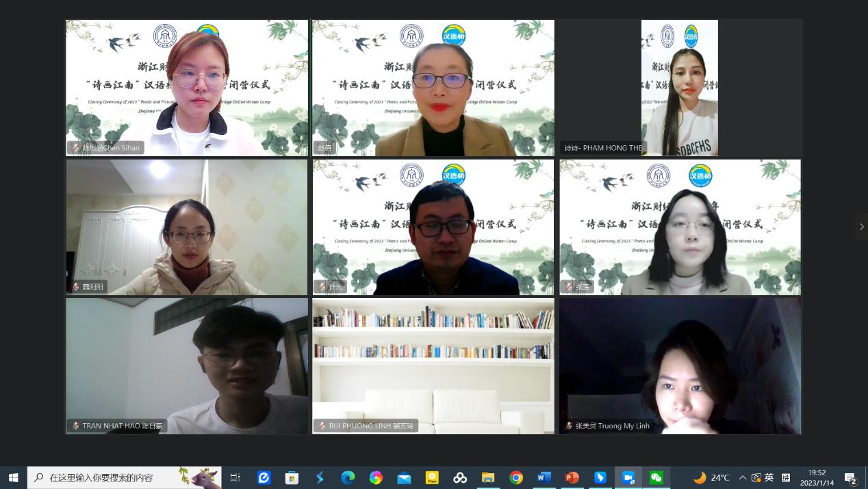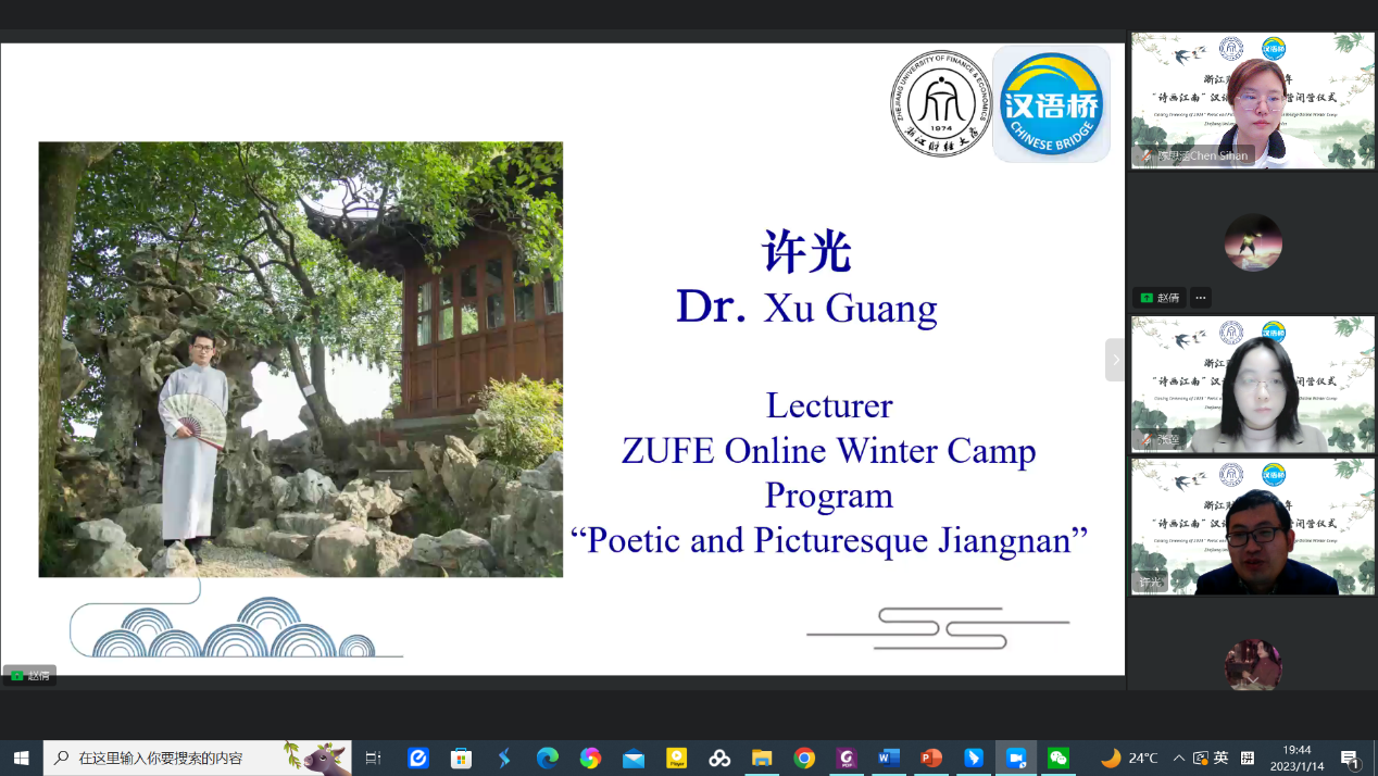 1月14日,球探体育比分承办的教育部汉语桥线上冬令营“诗画江南”顺利闭营。项目团队老师、参加冬令营的各国学员参加闭营仪式。仪式由球探体育比分