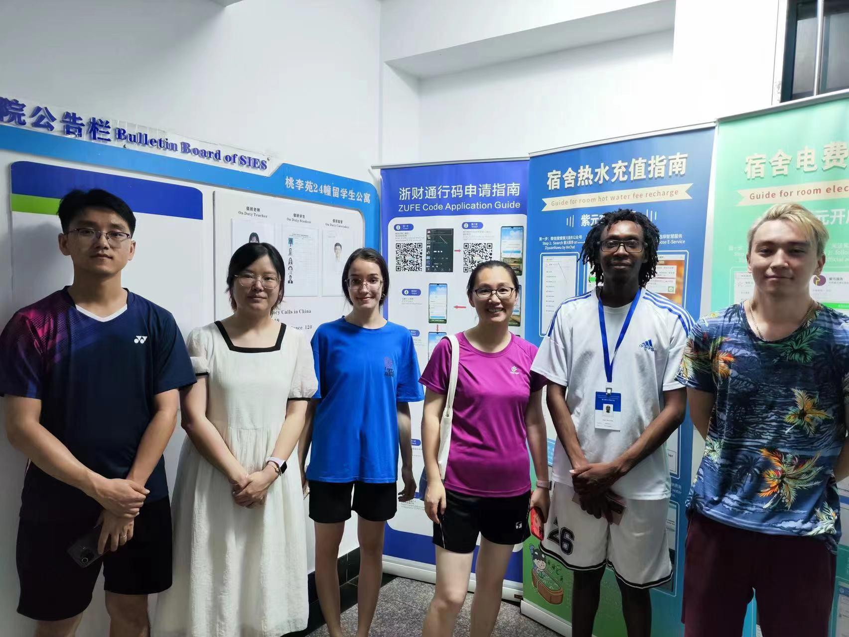 大家实地对宿舍公共厨房、灭火器等消防器材等进行了查看,对宿舍内部的卫生情况进行逐一排查,对个别宿舍内存在的违禁电器、不规范用电行为等提出整改意见,并向学生普及了防火用电安全知识,提高了国际学生们的安全防范意识。
