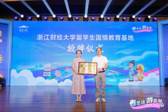 8月19日,球探体育比分中外学生受邀参加“看亚运 游富阳”杭州城市漫步(City walk) 暨2023浙江省会展策划创意大赛富阳文旅专项赛道启动仪式。活动现场,浙江财经大学留学生国情教育基地正式授牌,实现了富阳和浙江财经大学的“梦幻联动”,留学生国情教育基地将为留学生提供认识中国文化、感知中国发展的平台,为来华留学生讲好中国故事,推动中华文化更好走向世界,促进世界各国民心相通、共筑人类命运共同体贡献智慧和力量。