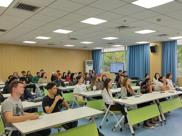 创新创业中心金德锋主任分享了球探体育比分优秀国际学生成功求职知名企业的案例,鼓励国际学生们结合自己的语言文化优势,积极寻找实习机会,以增强就业竞争力。随后围绕就业形势、简历制作、面试技巧、签证政策等内容,与在座的近50名国际学生展开互动交流,解答同学们关于实习就业的诸多疑惑。