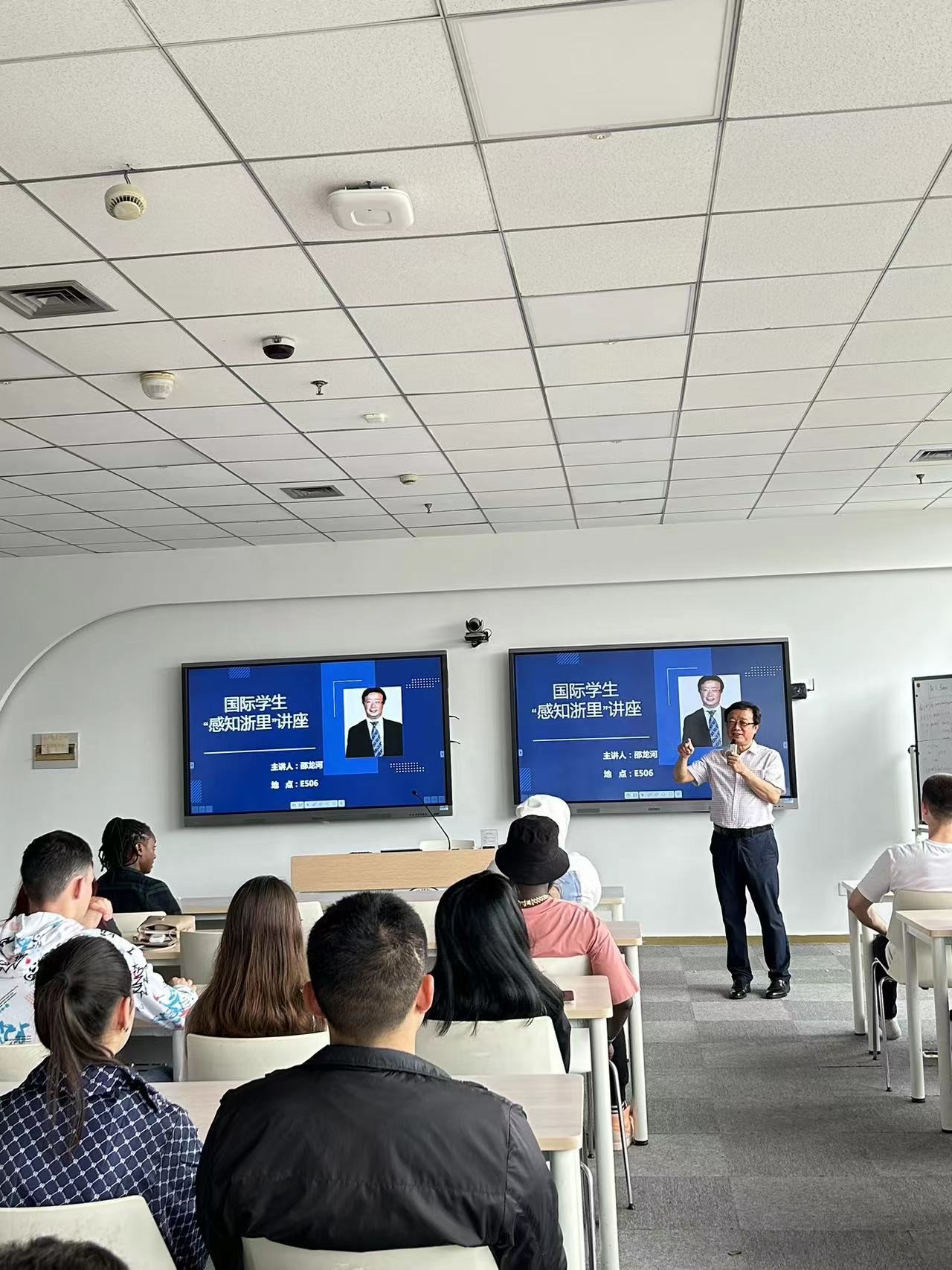 6月8日,汇孚集团总经理邵龙河为球探体育比分国际学生作题为“感知浙里”的专题讲座。境内相关专业的国际学生认真聆听了此次讲座。