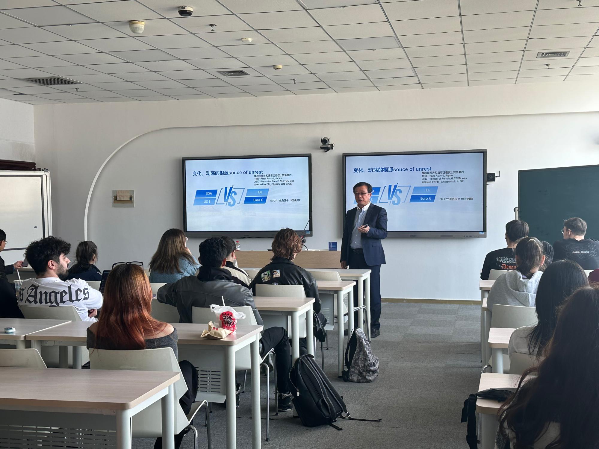 4月9日下午,汇孚集团董事长邵龙河来球探体育比分为留学生作了题为“国际形势变化与浙江外贸战略调整”的专题讲座,近五十名留学生参加了讲座。