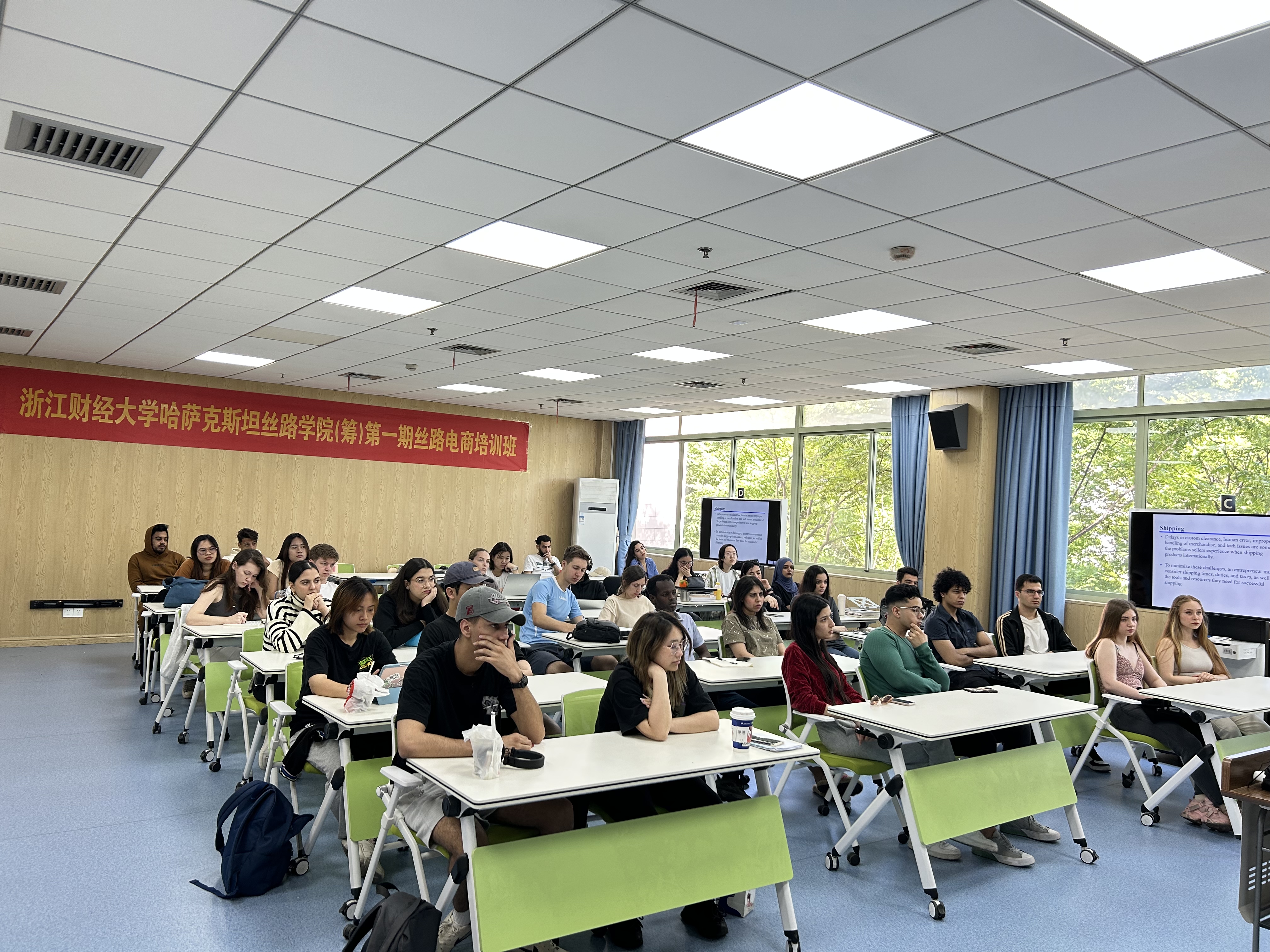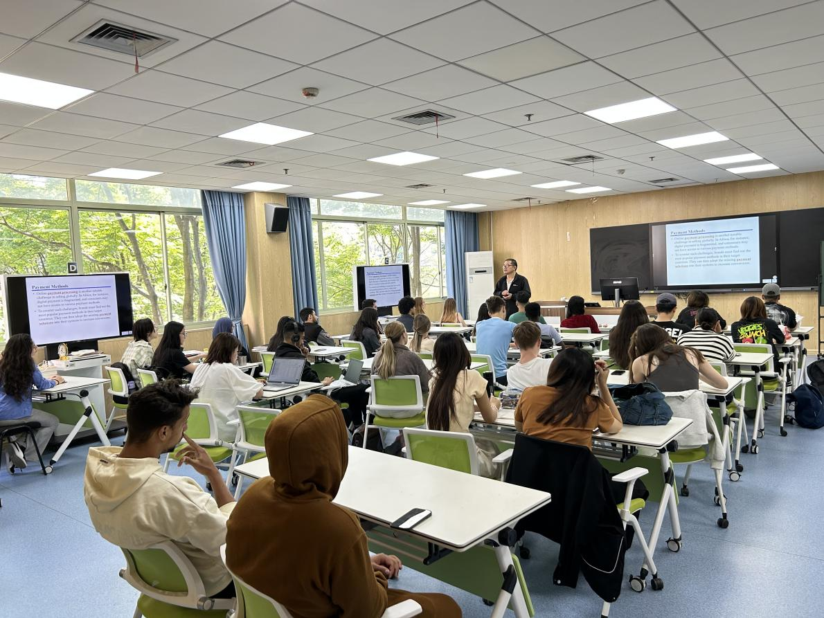 杭州百佳荟集团海外运营负责人岳海敏开展“跨境电商实操”教学,介绍了跨境电商的主要平台和工具,以及如何对电商平台进行设计和建设,包括网站布局、产品展示、购物车设计等,为学生们未来独立运营电商平台打下坚实的基础。