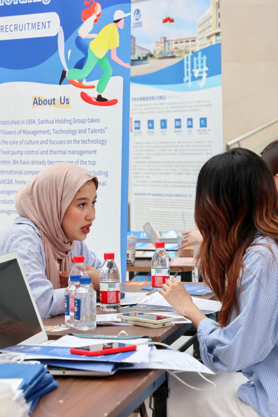 来自乌兹别克斯坦的留学生Ekhson,本科是商务英语专业,目前在读汉语国际教育研究生,他说“中国的工作机会非常好,老师们也特别关心我,我很想留在这里工作。我会中英俄乌四门语言,又非常了解中国文化,还懂商务知识,国际化是我最大的优势。”在这次招聘会上,Ekhson已经成功与一家知名跨国企业签订了合同,马上飞往俄罗斯参加国际展会。