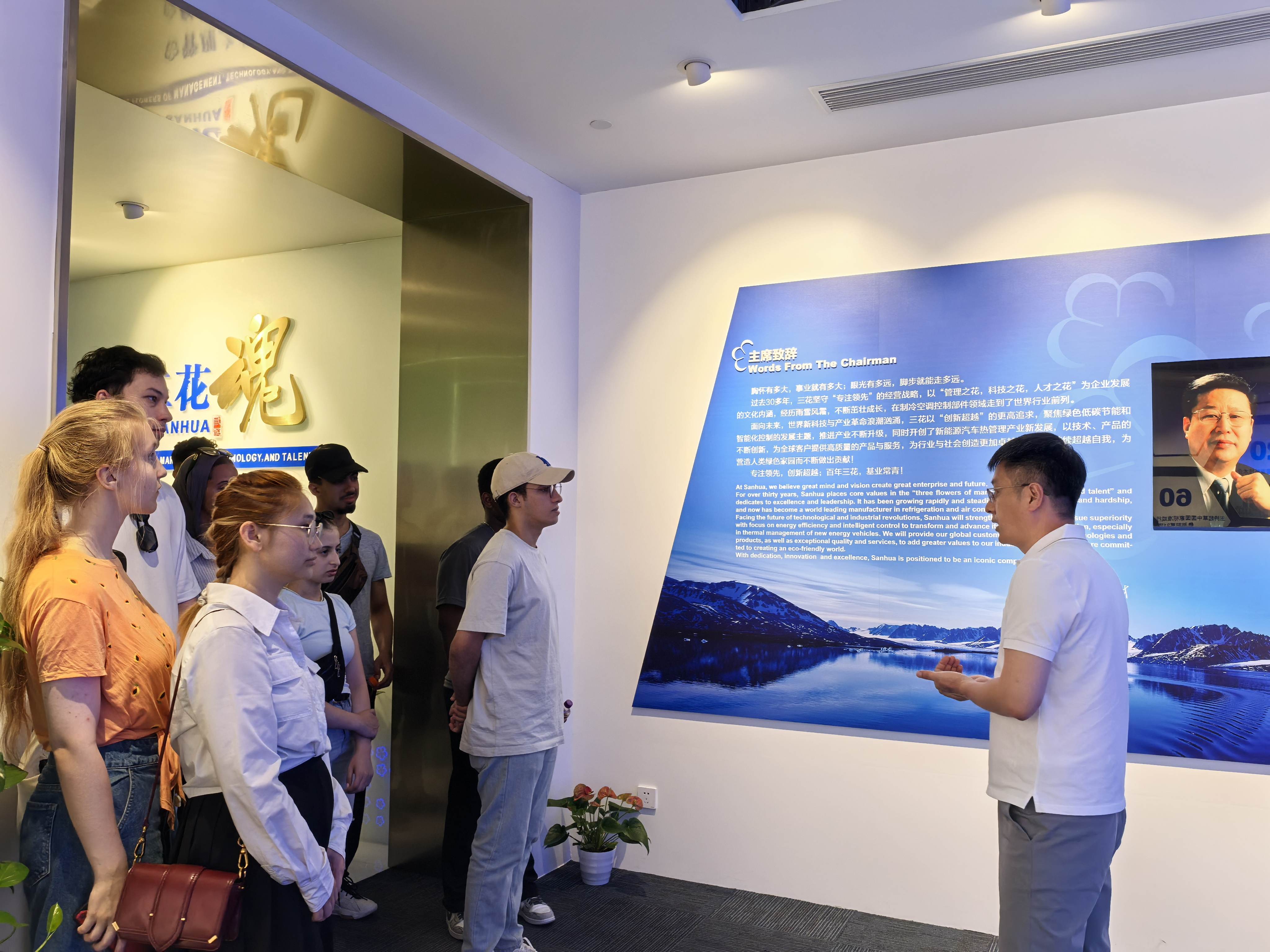 组织部分留学生赴三花控股集团有限公司参观学习,感受浙江的企业发展和现代化智能制造的魅力。