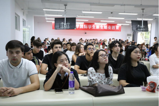 全体留学生新生和相关老师参 加了本次始业教育。