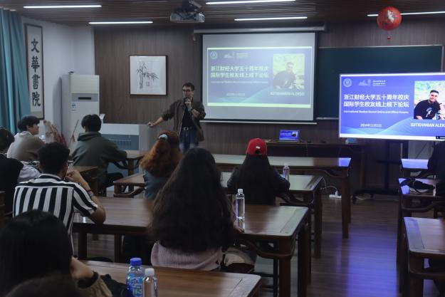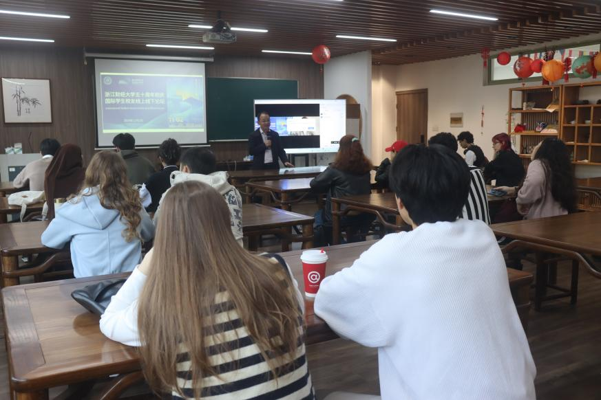 首先,柴志贤院长对专程返校和线上参加论坛的校友们表示热烈欢迎。他指出,母校是你们的第二个家,浙财大见证了你们弥足珍贵的求学岁月,希望校友们能情系母校,常回来看看,并在各自工作的领域发光发热,为促进中外经贸往来,中外友好交流贡献自己的青春力量。