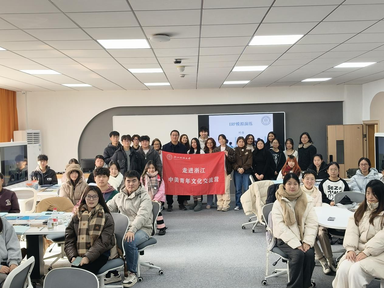 此外,学员们还深入吉利集团、康师傅等知名企业参观学习,领略浙江数字经济的发展脉搏与创新成果;走进钱塘区江东村,亲身感受中国美丽乡村的建设风貌。尤为精彩的是,美国青年在ERP系统中模拟中国企业运营,中美青年还开展了企业决策模拟对抗赛,在激烈的思维碰撞中,不仅对中国企业发展有了更深刻的认知,也收获了珍贵的跨国情谊与实践经验。