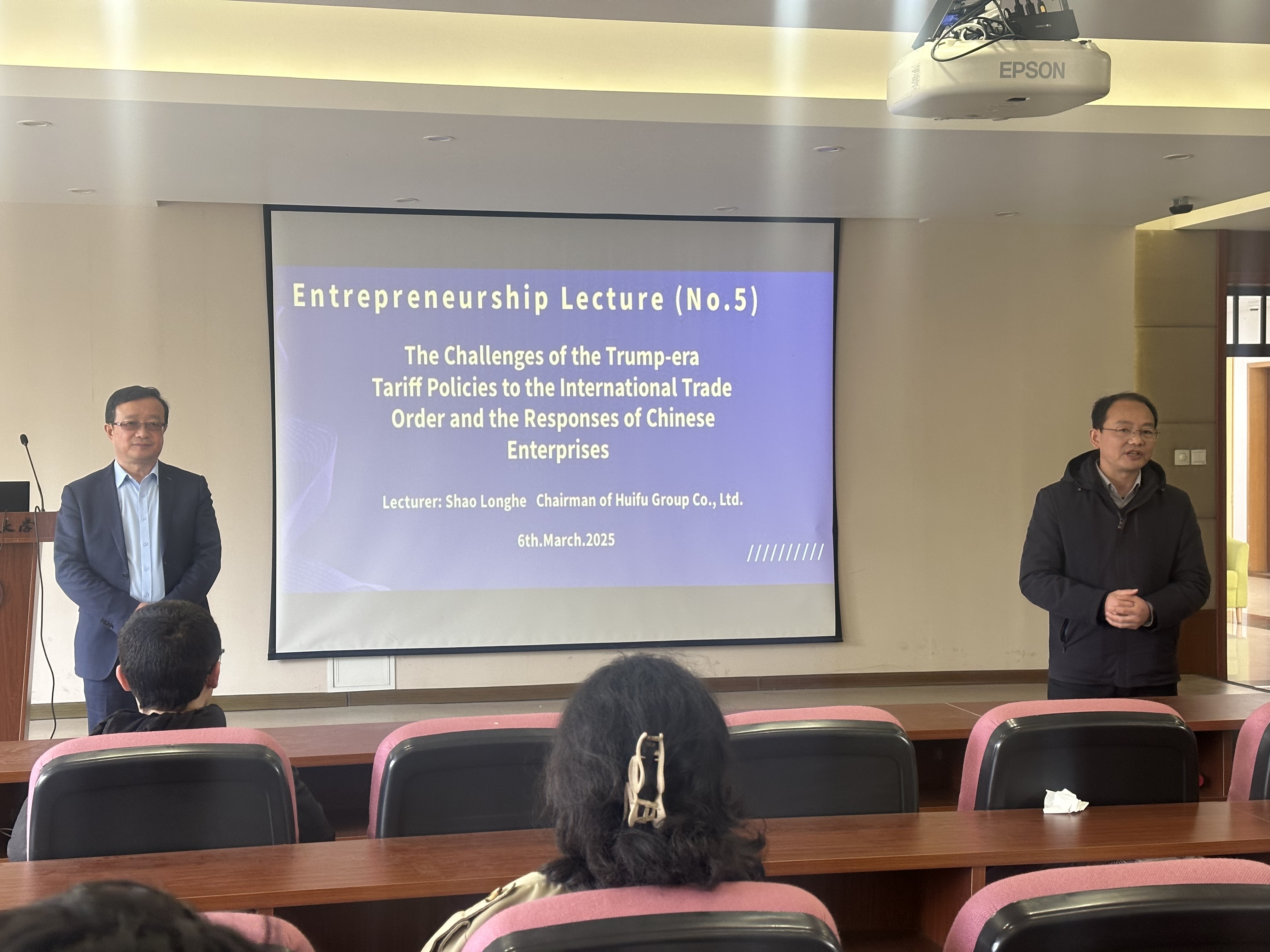 3月6日下午,汇孚集团董事长邵龙河受邀来球探体育比分给留学生作了题为“The Challenges of the Trump-era Tariff Policies to the International Trade Order and the Responses of Chinese Enterprises”的讲座,百余名中外学生参加了本次讲座。