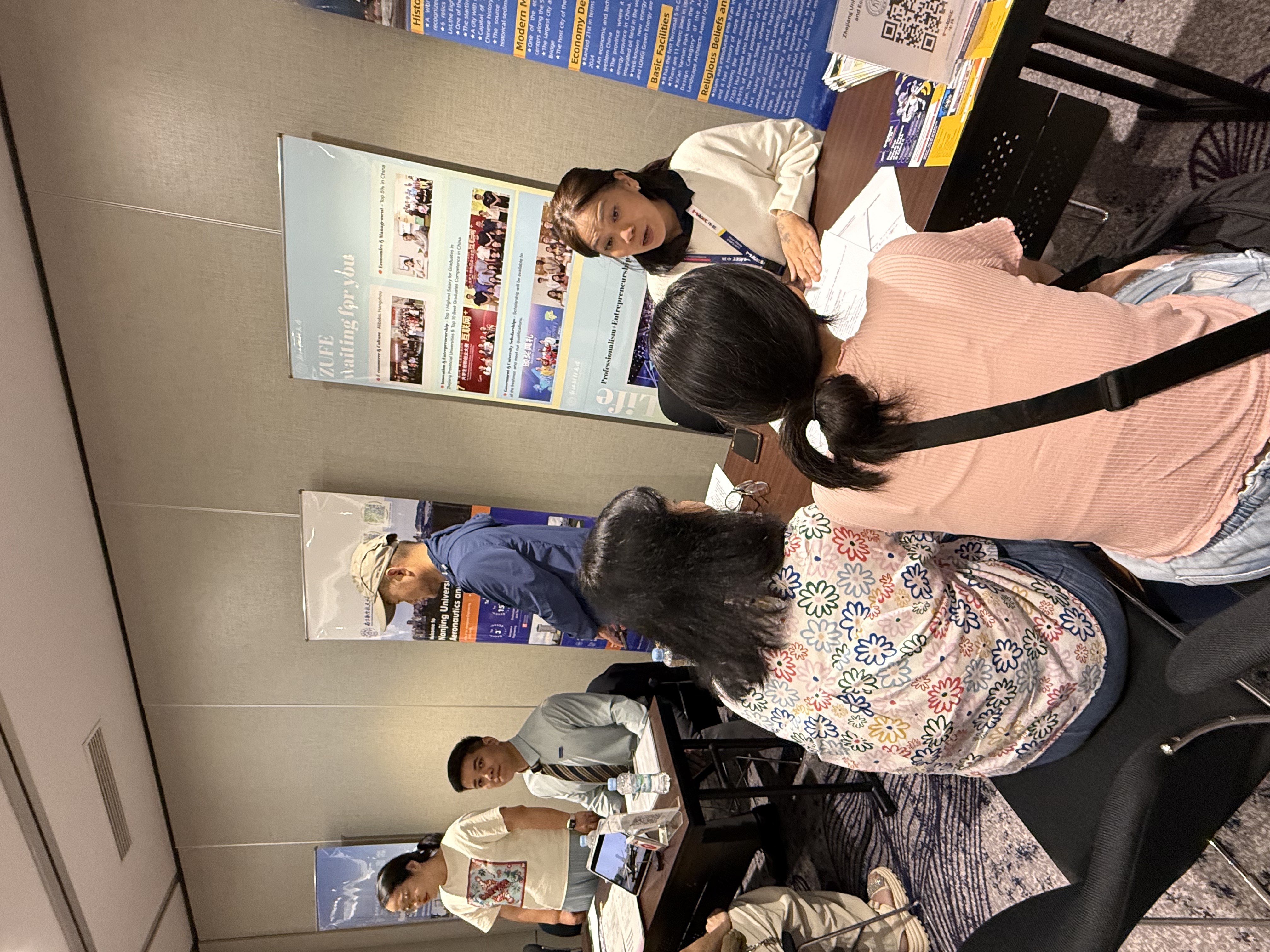 委托青岛中邦公司的专业服务团队,重点推介了学校国际经济与贸易、电子商务、商务汉语、会计学等优势学科专业,并详细解读了本科、硕士项目的招生政策、奖学金计划等。展台还通过虚拟校园导览、校友分享视频等形式,生动展示了浙财的教学环境与国际化氛围。