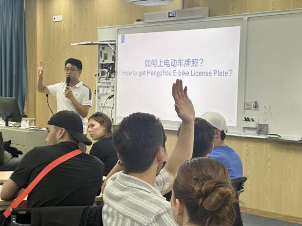 还组织国际学生签署了《电动自行车安全承诺书》,明确安全责任,进一步提升国际学生的交通安全意识。国际学生们纷纷表示将严格遵守相关规定,共同维护校园交通安全。