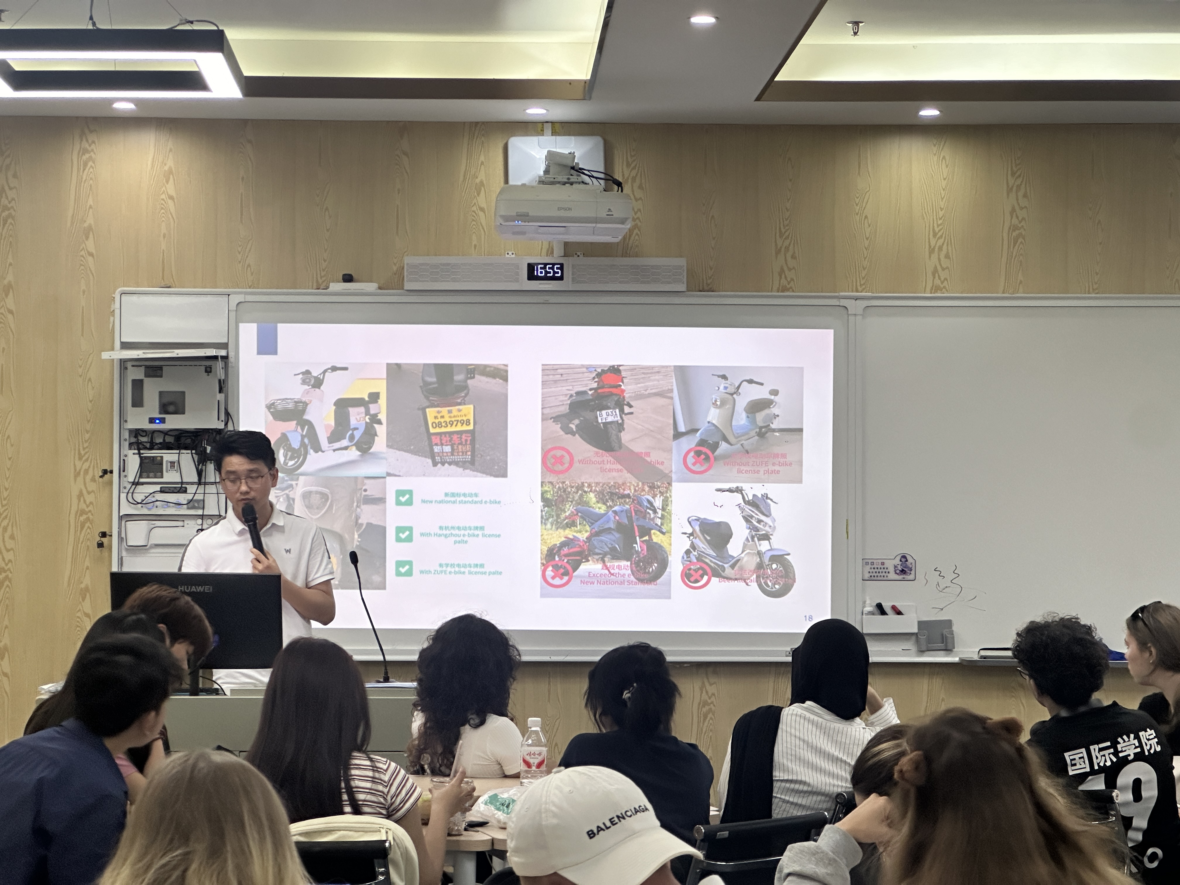 首先,辅导员汪博林对近期国际学生电动车交通安全事故和校内电动车不文明行为进行了通报批评,并宣读了“电动车不文明行为黑榜”名单。随后会议围绕“校内电动车不文明行为”、“购买电动自行车须知”、“电动自行车充电安全”、“电动自行车规范停放”等议题,结合典型交通事故案例,观看交通事故视频等形式,与在场国际学生展开深入交流,为大家上了一堂生动且深刻的交通安全课。