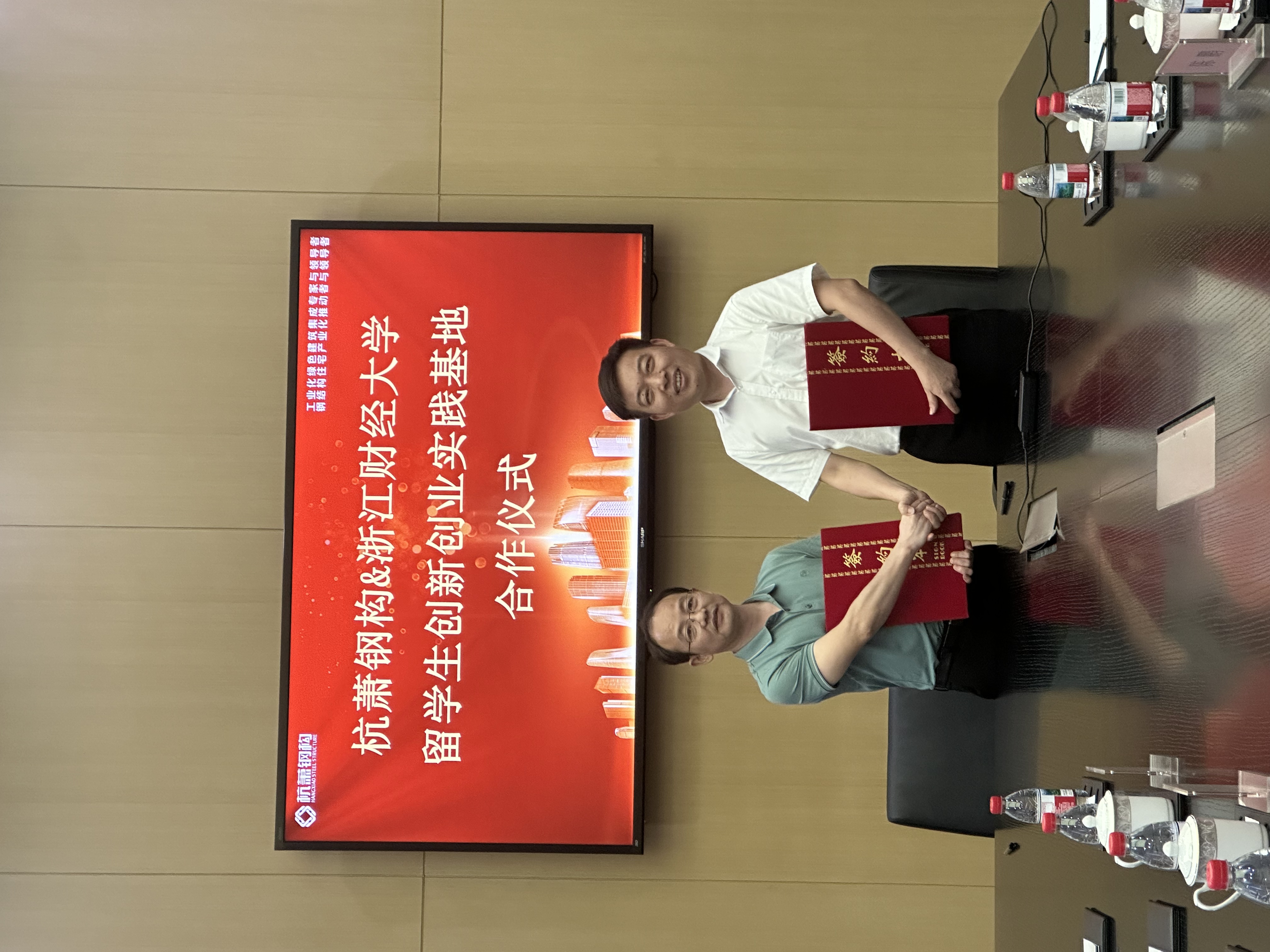 参观结束后,双方在会议室进行了深入的交流座谈。杭萧钢构副总裁董志武首先介绍了企业发展战略、人才需求以及对留学生创新创业人才培养的期望,表示愿意为留学生提供实践机会和平台,助力他们将理论知识与实践相结合,提升创新创业能力。接着,柴志贤介绍了球探体育比分留学生的基本情况、专业设置,强调了学校在培养具有国际视野和创新能力的复合型人才方面的努力和成果。在热烈友好的氛围中,双方正式签署了留学生创新创业人才培养实践基地协议,为留学生提供更广阔的发展空间和更多的实践机会。