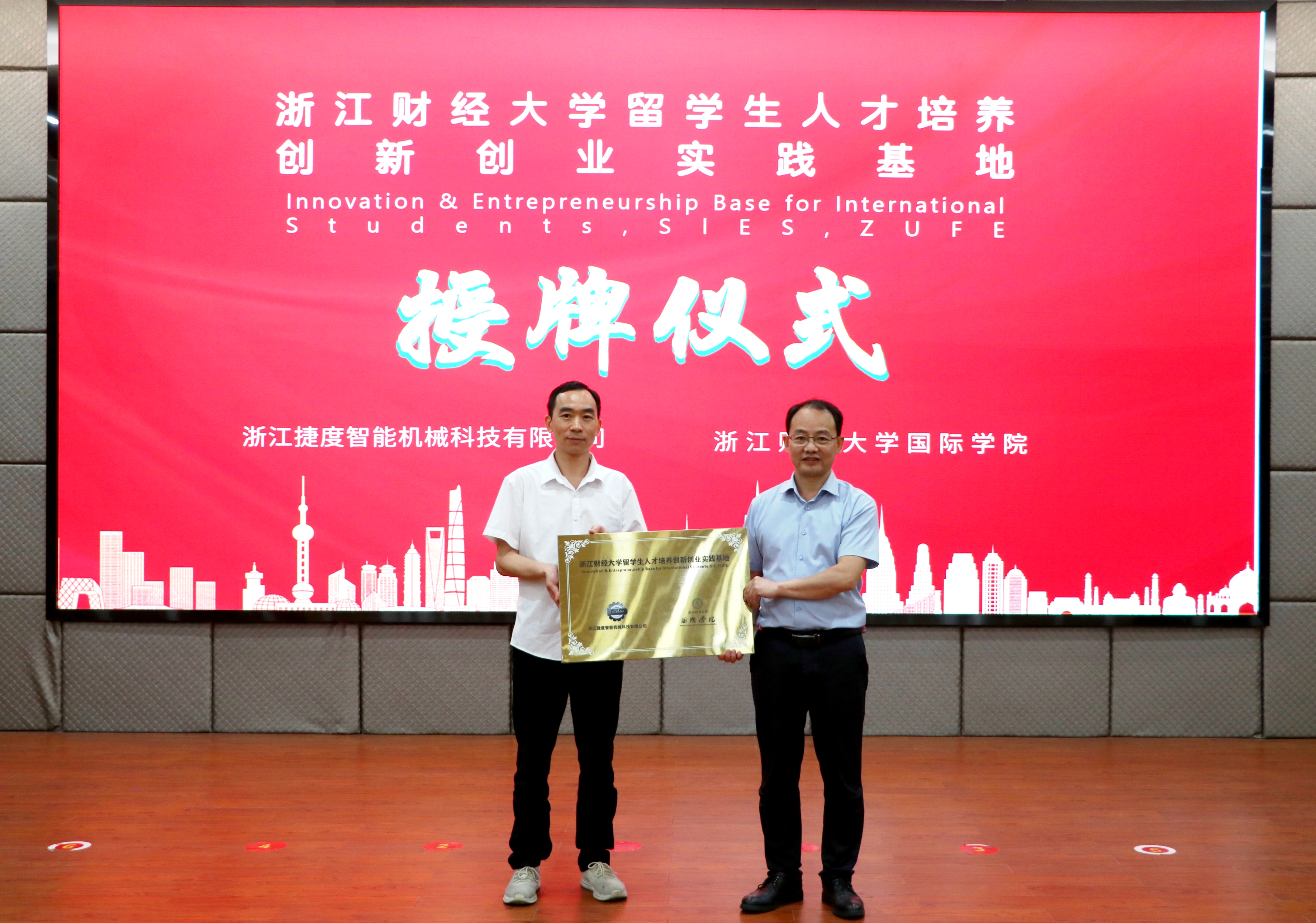 在浙江捷度智能机械科技有限公司,留学生们参观了自动化生产线,近距离观察制造流程。随后,校企双方举行“浙江财经大学留学生人才培养创新创业实践基地”授牌仪式。此次合作将为国际学生搭建“理论学习+产业实践+创业孵化”的一体化平台,助力培养具备国际竞争力的应用型人才。