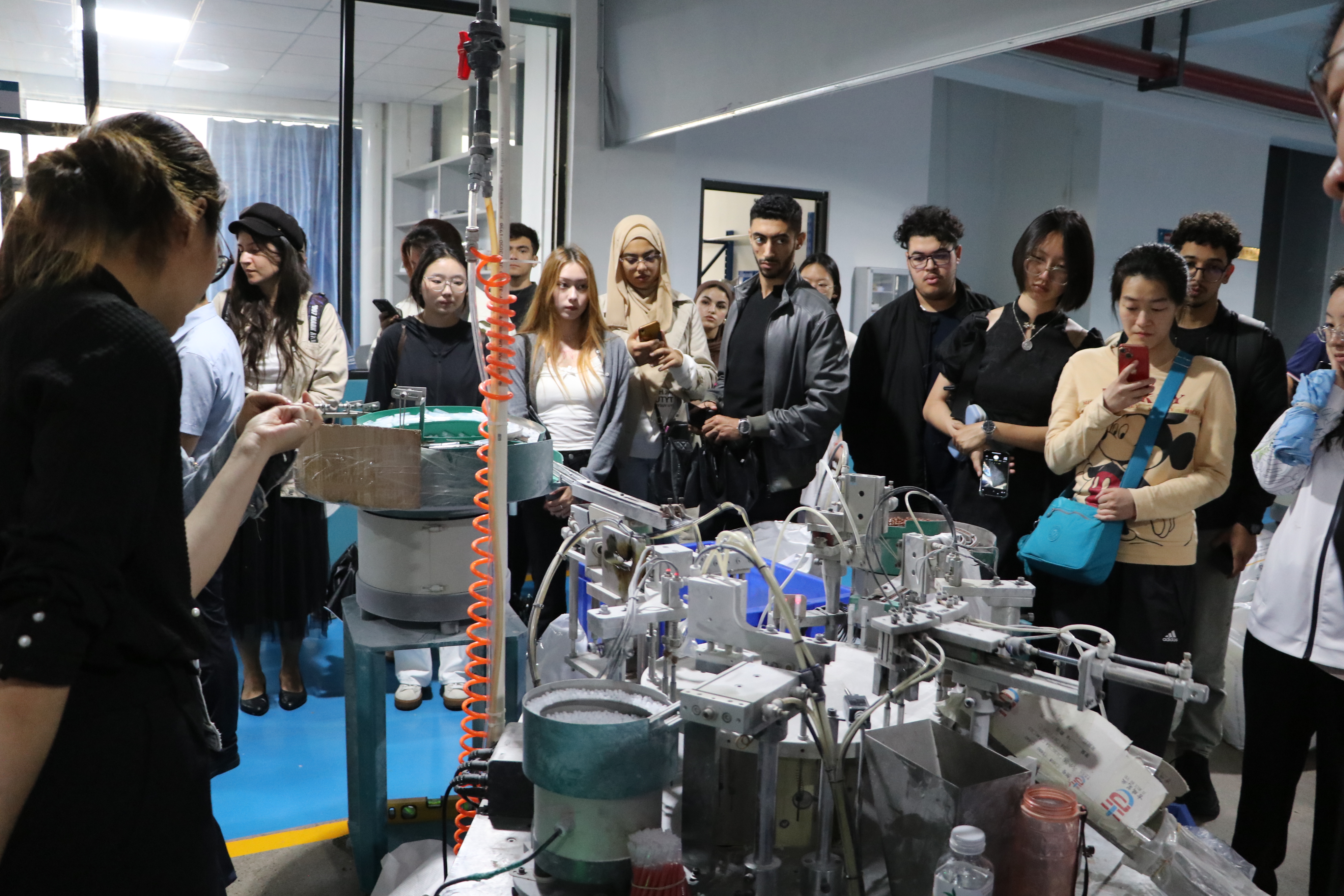 在浙江韩韵工贸有限公司,企业负责人带领大家参观了完整的制笔生产线,从模具生产、笔芯注塑、到成品组装,每个环节都让国际学生们大开眼界,亲眼见证了“中国制造”的惊人速度与规模。
