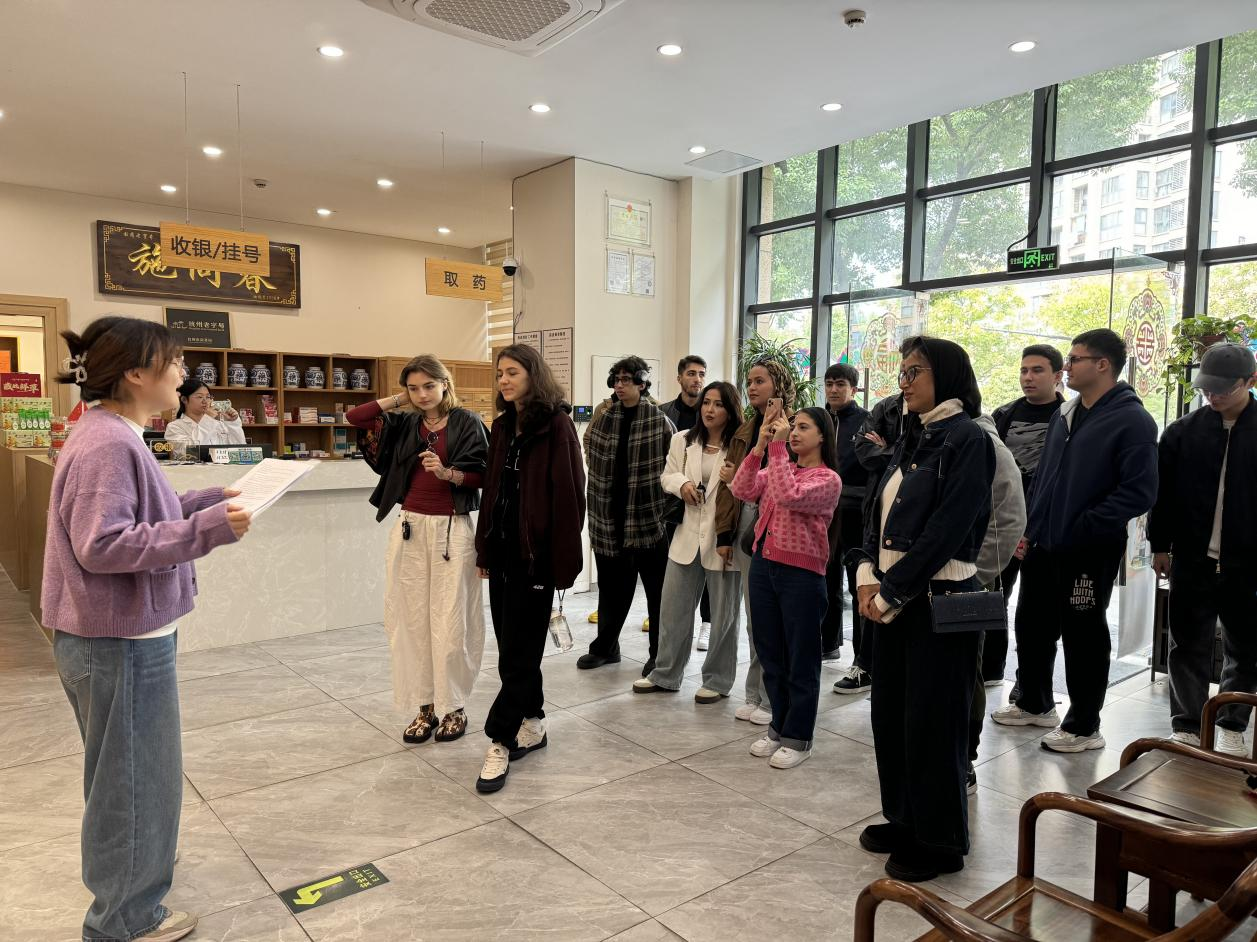 包兴教授带领《Operation Management》课程留学生班前往杭州老字号企业——施同春开展现场教学。来自俄罗斯、摩洛哥及中亚等“一带一路”沿线国家的留学生们通过实地探访,沉浸式体验了传统中医药服务的现代运营管理逻辑,实现了理论与实践的生动共鸣。