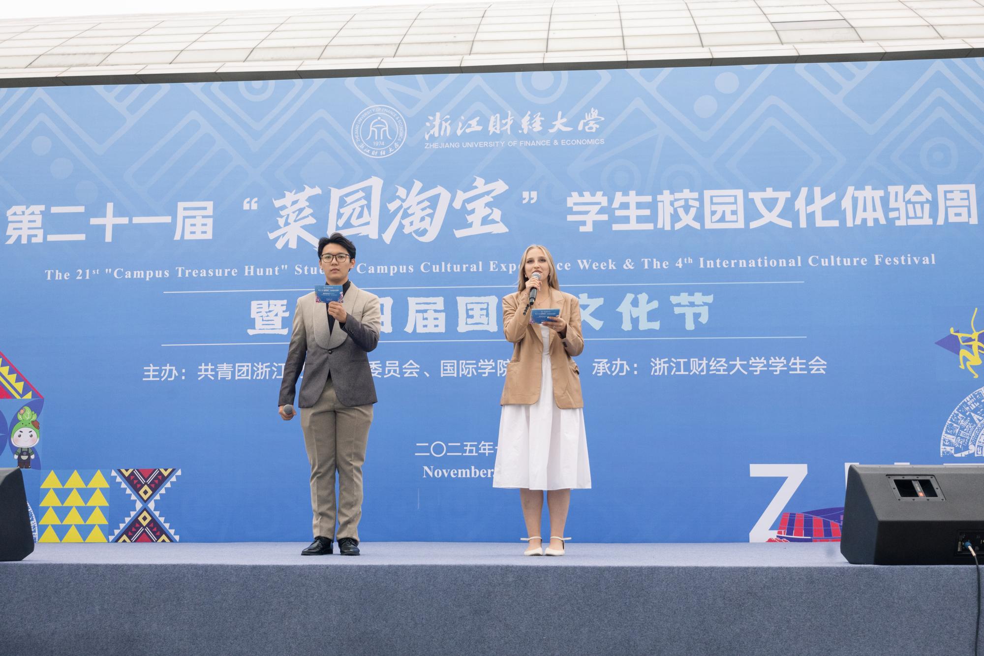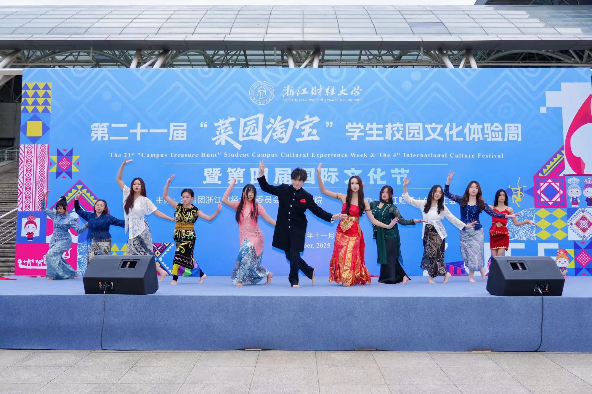 11月11日下午,由校团委、国际学院联合主办的浙江财经大学第二十一届“菜园淘宝”学生校园文化体验周暨第四届国际文化节开幕式文艺汇演,在师生们的热切期待中隆重上演。一场融汇中外、精彩纷呈的文化盛宴在校园内华丽绽放,标志着为期五天的校园文化盛宴正式启幕。