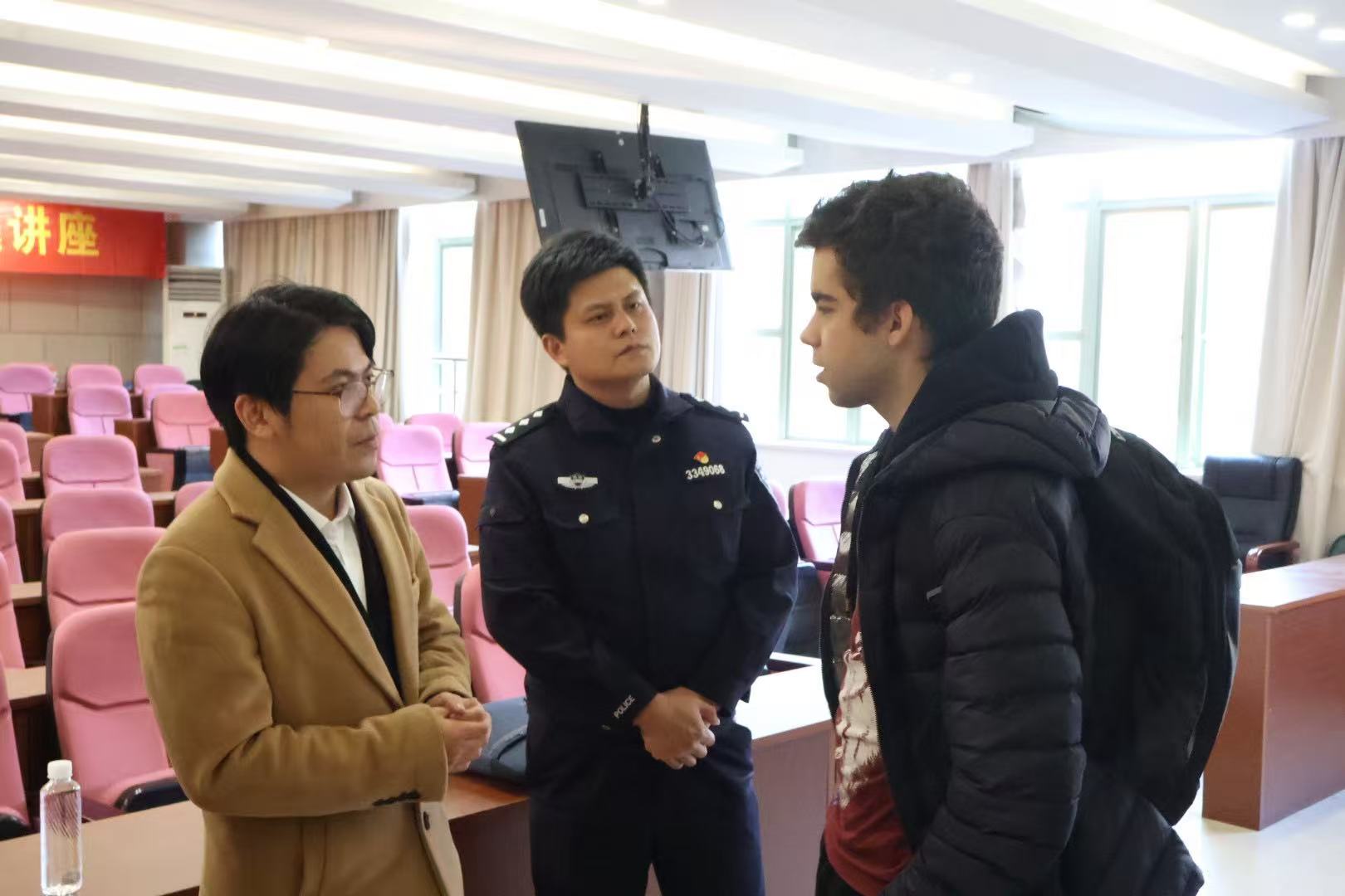 讲座现场气氛严肃而认真,国际学生们全神贯注,对讲授的内容表现出极大的关注。在互动环节,同学们踊跃提问,就如何辨别潜在危险、遇到诱惑时如何正确应对等问题与王讲师进行了深入交流。