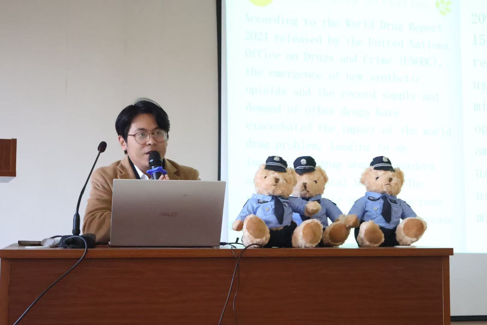 特邀浙江省戒毒康复所“良渚之光”禁毒法治教育讲师团特聘讲师王双非,为全体留学生带来了一场主题为《警惕--笑里藏毒》的禁毒法治教育专题讲座。本次活动旨在帮助留学生们深入了解国内禁毒戒毒工作的严峻形势与严格要求,深刻认识到“笑气”等未列管成瘾性物质的巨大危害。