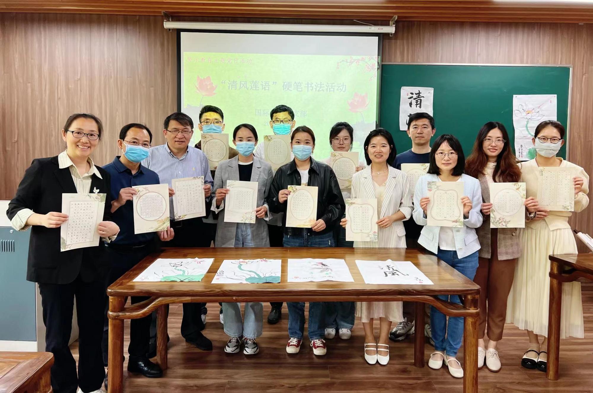 本周,国际学生们也同步开展了“清风莲语”主题书画课,师生们相互学习,通过书法、水墨画的形式精心描摹,用妙笔来勾画国际学生心中的“廉”。在老师的指导下,一幅幅清雅的书画作品应运而生。