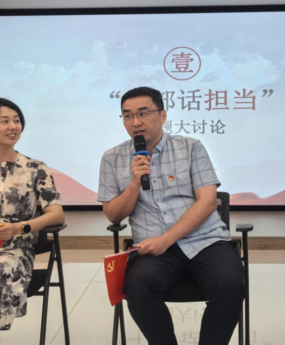 在随后的自由讨论环节,全体党员围绕"浙财精神"展开热烈讨论。同志们立足于工作实际,聚焦学校发挥与时代内涵,畅谈对"一流财大,师生何为”的理解。"做好小事”"全心服务”“踏实肯干”“勇于担当”“锐意创新”等词汇频出,这些朴实的话语正是"浙财精神"在行政管理岗位上的生动体现。