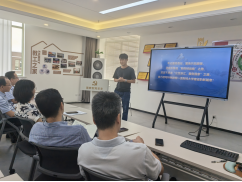 随后会议进行新入职员工欢迎环节,四位新成员依次上台自我介绍。国际学院江可悦、蓝怡琳结合自身在国际教育领域的学习与实践经历,表达了深耕跨文化人才培养、助力学校国际化办学的决心;数字化办公室、现代教育技术中心汤语聪分享了在人工智能技术方面的专业积累,表示将全力做好教学科研的数字化支撑工作;创业学院孙佳杰围绕“产教融合”主题,阐述了推动创业教育与乡村振兴需求对接的思考。黄金娟代表党总支对新成员的加入表示热烈欢迎,并鼓励他们以“开拓创新”的姿态尽快融入团队。