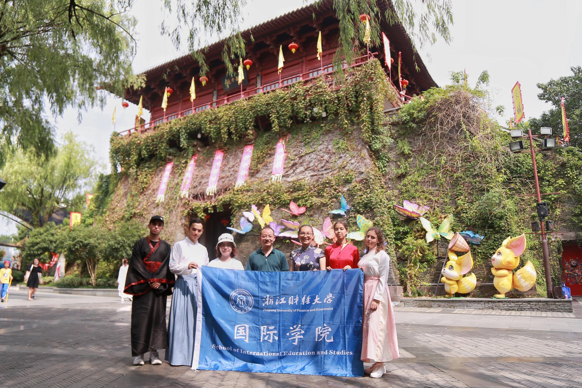 组织球探体育比分数名中外学生赴宋城景区参观,并进行“汉语桥”实地直播课堂录制。