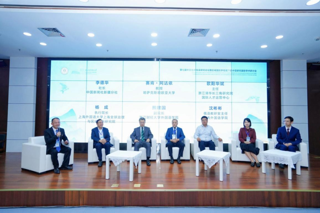 院长柴志贤主持。来自中国新闻社新疆分社社长李德华、上海外国外大学上海全球治理研究区域国别研究院的杨成教授、哈萨克斯坦欧亚国立大学的赛肯·阿达依教授、清华长三角研究院人事国际人才管理的欧阳华斌先生、浙江越秀外国语球探体育比分