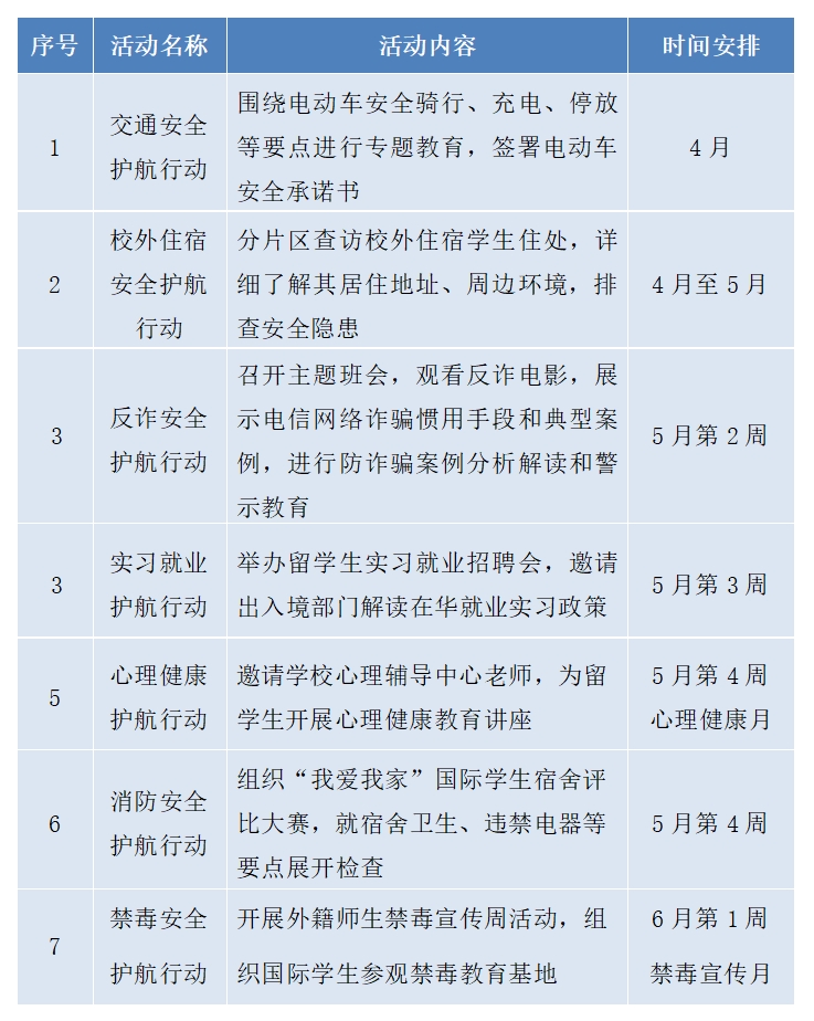 为贯彻落实学校“平安校园”建设及综合治理工作会议精神,落实落细各项安全管理举措,保障校园安全稳定,结合球探体育比分 近期安全隐患排查过程中发现和存在的安全隐患风险点,球探体育比分 计划于2024年4月至6月开展为期一个月的“留学浙财平安护航月”活动,现将活动安排通知如下: